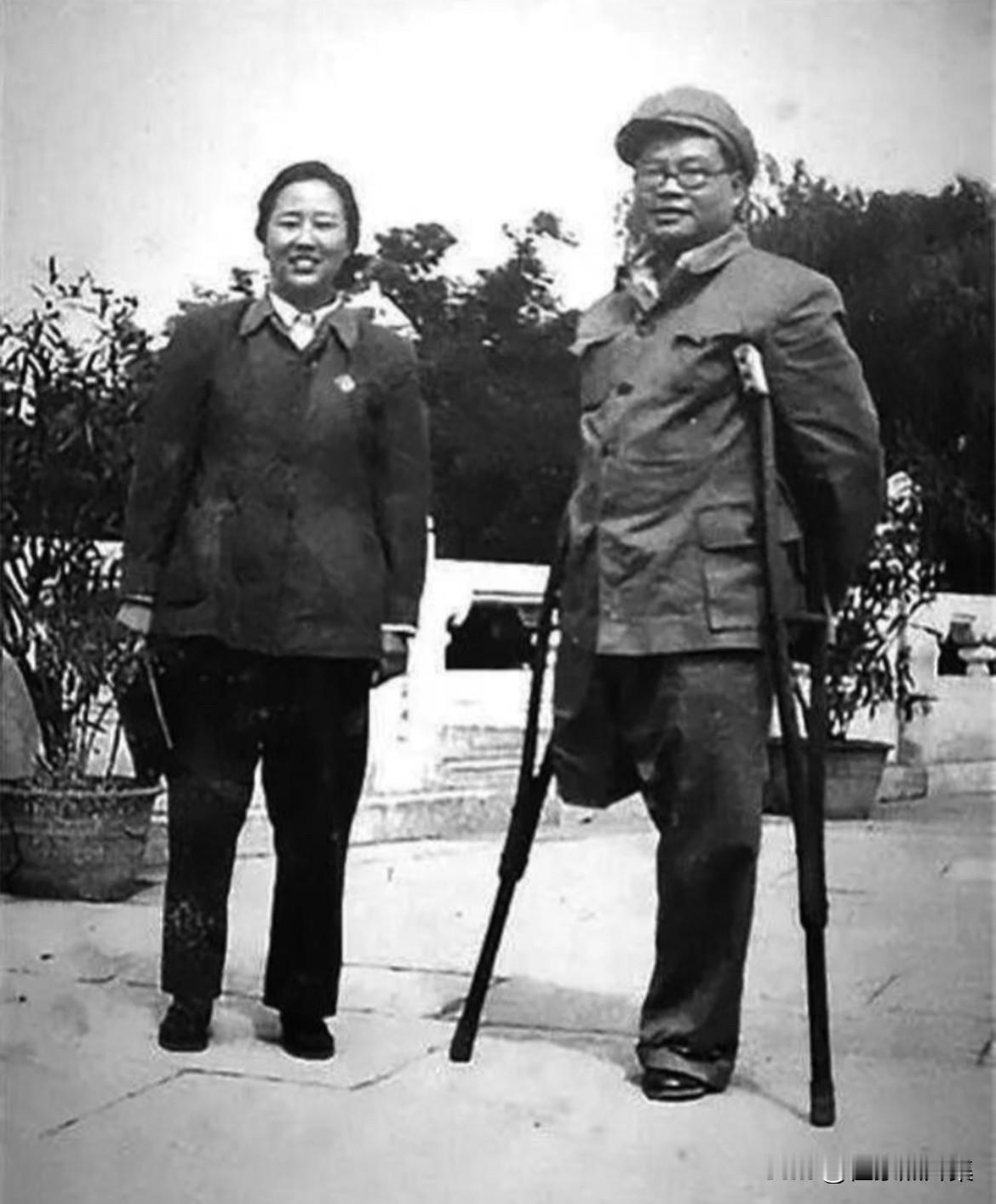 钟赤兵及妻子的合影,前者在战争中失去了右腿。用户想了解钟赤兵失去腿的原因以及他与妻子的爱情故事。1935年娄山关战斗中负重伤,钟赤兵右腿中弹,因医疗条件简陋,在无麻药情况下三次截肢,最终失去整条右腿。毛泽东主席后来听闻此事,曾感慨地说: “我们应该在娄山关立个石碑,写上‘钟赤兵在此失腿一只’。”
