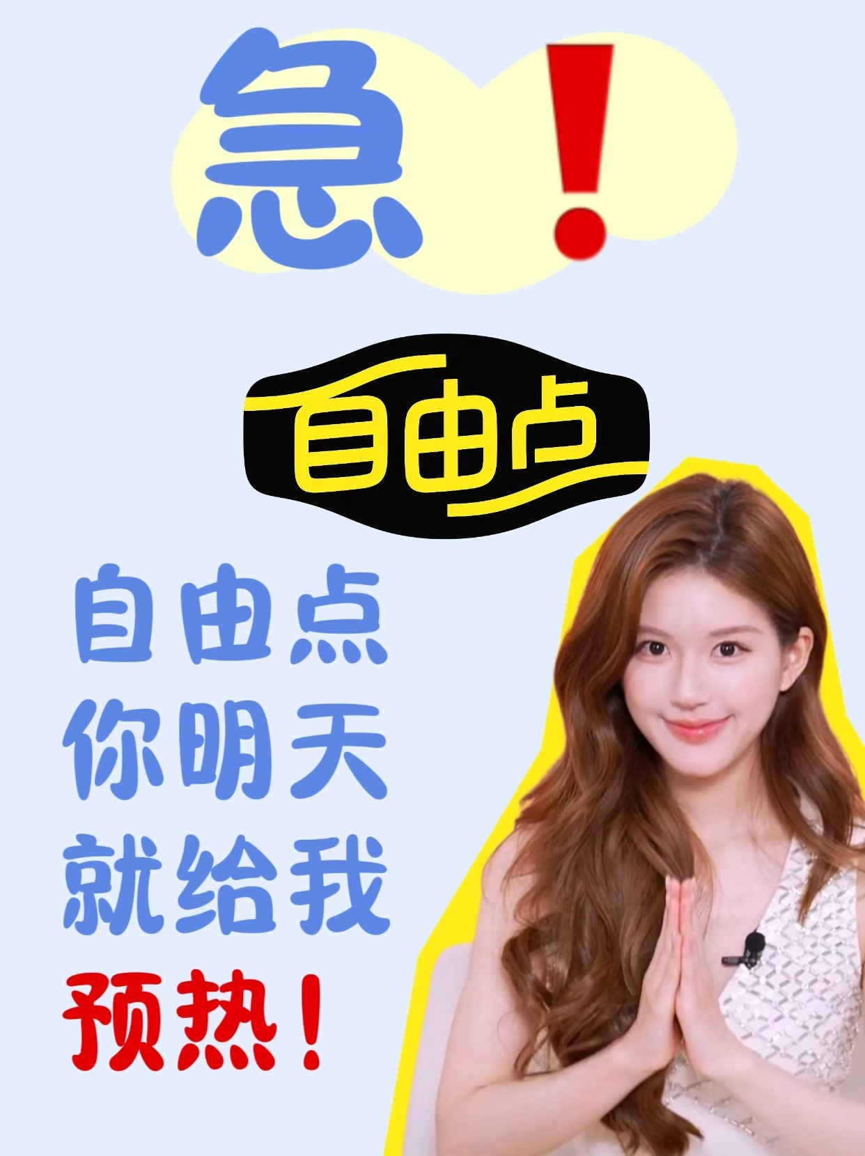 我是急急国王!自由点你明天就给我预热!!!我连朋友圈文案都想了好多版本了😂就等你们发图直接复制!再不宣,我就要去重庆堵自由点大门了!!说真的我家卫生巾是真的快没货了,就等着38囤一波赵露思自由点自由点全球品牌代言人卫生巾