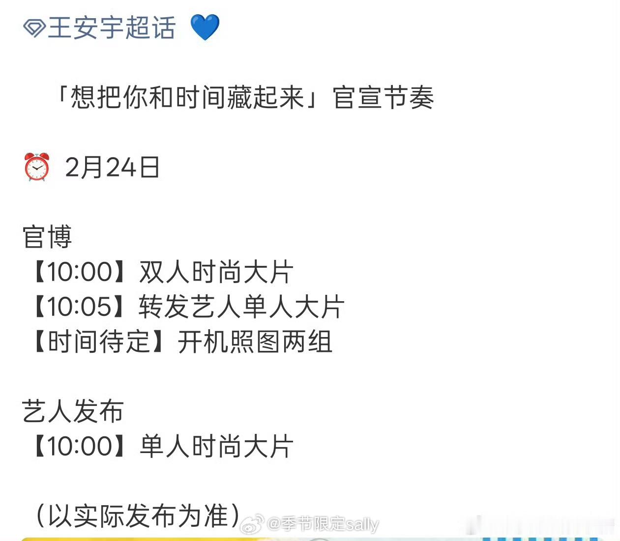 章若楠王安宇《想把你和时间藏起来》明日官宣