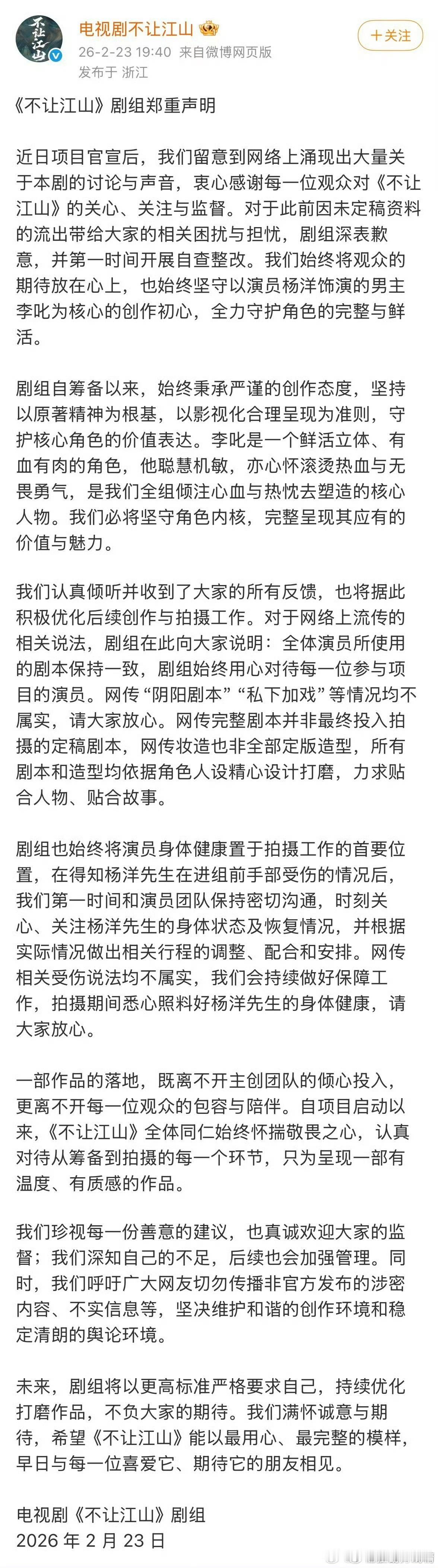 不让江山剧组声明看完官方的长文,我觉得大家可以把心放肚子里了,其实仔细想想都知