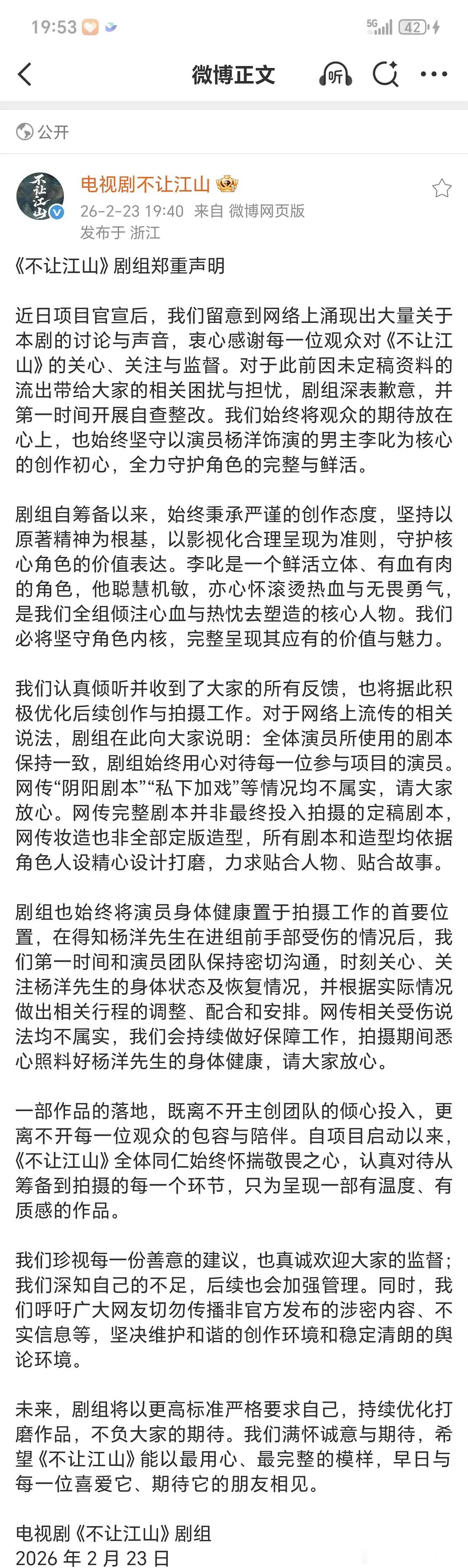 吃瓜吃了一天,《不让江山》剧组,这剧把男主杨洋的戏份高光,甚至唯一的官配老婆都