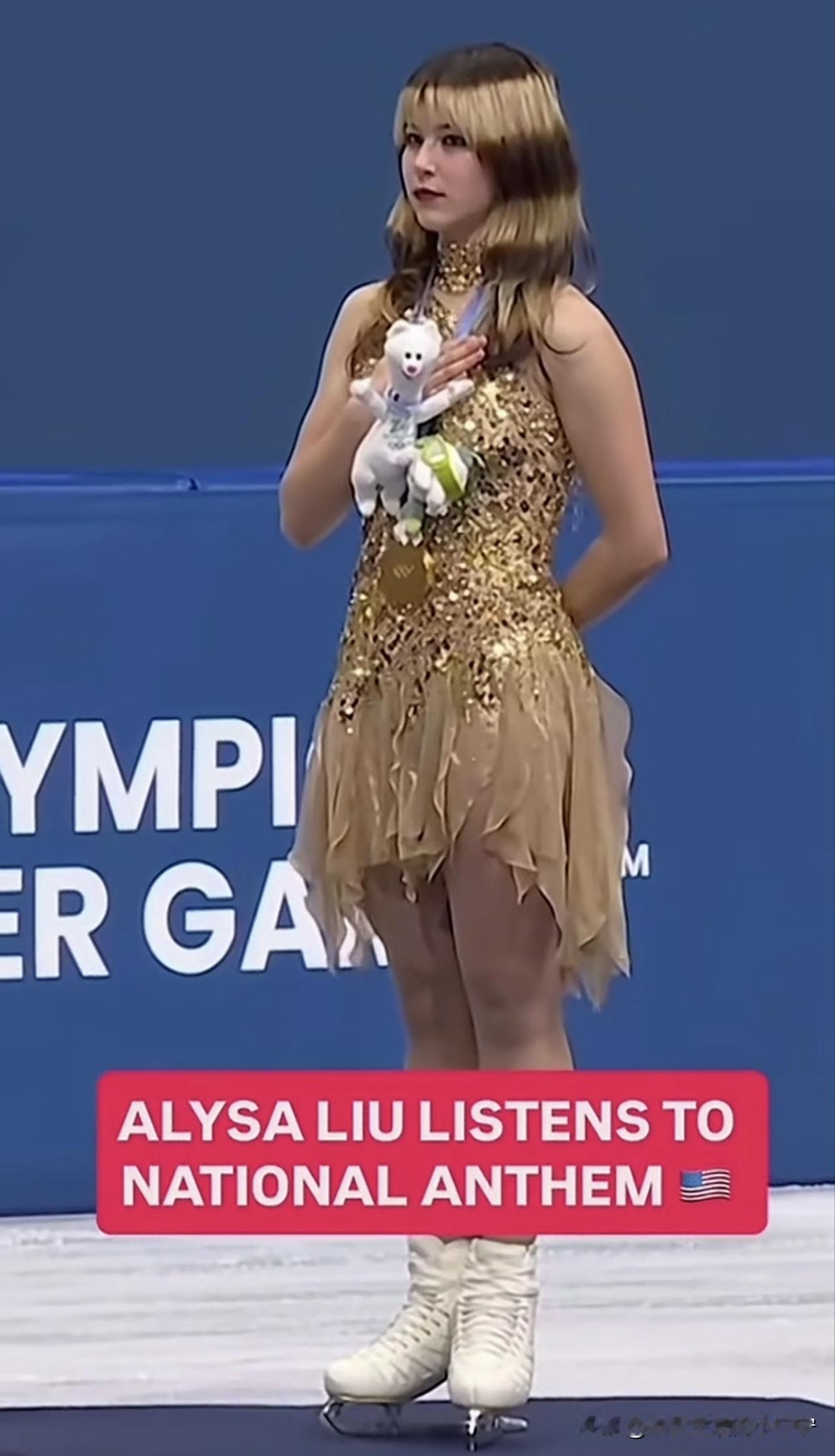 别再说刘美贤夺冠,也是为咱中国人争光了,也是中国人的骄傲。 更有甚者还往自己脸上贴金,说刘美贤是半个四川人。 看看这颁奖仪式,美国国歌响起,星条旗升起,人家刘美贤摸着自己的心脏,自豪的不要不要的! 人家是彻头彻尾的美国人,美国生美国长,跟咱半毛钱关系都没有!