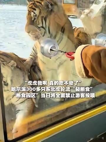 “虎虎我啊,真的吃不动了!” 哈尔滨300多只东北虎轮流轻断食 春节假期期间,哈尔滨东北虎林园每天接待游客超过万人。面对高频投喂带来的压力,园区启动“轻断食”轮休计划,13个散放园区轮流投喂。 万人客流叠加密集投喂,让这群百兽之王彻底失去食欲,连日常的巡视与互动都懒得完成,这不是矫情,是实打实的健康警报。 轻断食绝非饿肚子,而是联合高校专家制定的科学方案,成年虎每周仅1-2天控量,幼虎、孕虎、老年虎全程不参与,底线守得清清楚楚。 正常成年东北虎日均肉食8-10公斤,假期游客投喂量远超标准,过量油脂与杂乱进食,极易引发脂肪肝、肠胃病,直接缩短寿命。 园区每天只停一个园区的游客投喂,其余区域正常开放,既不影响游览体验,又能给老虎肠胃与代谢留出缓冲空间,分寸拿捏到位。 野生老虎本就有周期性空腹习性,人工环境下定期控食,能唤醒捕猎本能,避免长期饱食导致的慵懒与体质下降,贴合自然生存规律。 不少游客把投喂当乐趣,却不知无节制的善意,正在把猛兽喂成“病猫”,文明观赏从来不是满足一时兴致,而是尊重动物的生命规律。 国内多地景区都曾因过度投喂出现动物健康危机,从肥胖锦鲤到高血糖熊类,教训摆在眼前,哈尔滨虎园的做法,是及时止损的清醒操作。 规则公示、分区执行、科学配比、特殊群体豁免,这套组合拳既护好了老虎,也引导了游客,值得全国景区借鉴与推广。 爱动物的最好方式,是克制多余的投喂,守住专业的养护,让它们保持野性与健康,这才是对生命最真诚的尊重。 各位读者你们怎么看?欢迎在评论区讨论。