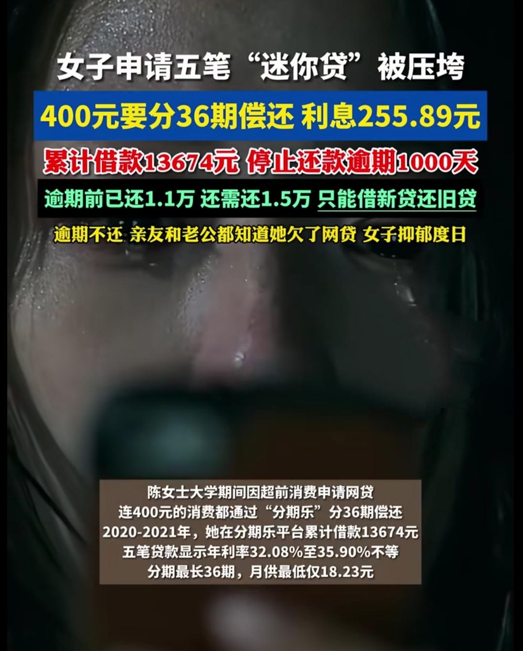 谁能想到,大学时一次贪图方便的网贷,竟让陈女士掉进了长达千日的深渊。当年她被校园推销忽悠,在分期乐借了1.3万,看似不起眼的五笔贷款,年利率竟高达32%以上,400元都要分36期还,套路藏得深。 她原本没收入,只能借新还旧撑着,可每月近740元的还款额,终究压垮了生活。2022年停缴后,逾期超1000天,她不仅被暴力催收连累亲友,还被逼出了抑郁症,而她明明已经还了1.1万,平台却还显示欠1.5万。 这起事件戳破了“迷你贷”低月供的伪装,也印证了监管新规的必要。2026年金融监管已明确利率上限,为借款人撑腰。面对这样的消费陷阱,到底是年轻冲动的代价,还是平台蓄意的收割,值得每个人仔细思量。