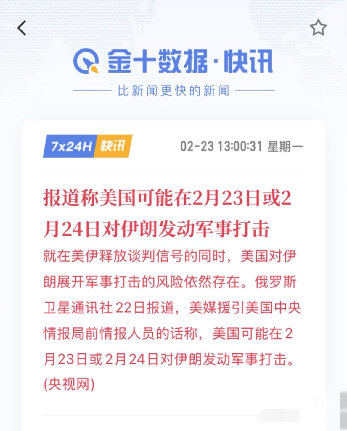美国真要在2月23或24日对伊朗发动军事打击? 我觉得打不起来,因为特没谱不按常理出牌,当大张旗鼓说打的时候恐怕打不了的,也可能哪天他心情不好突然就打了,当然还是祈祷世界和平。