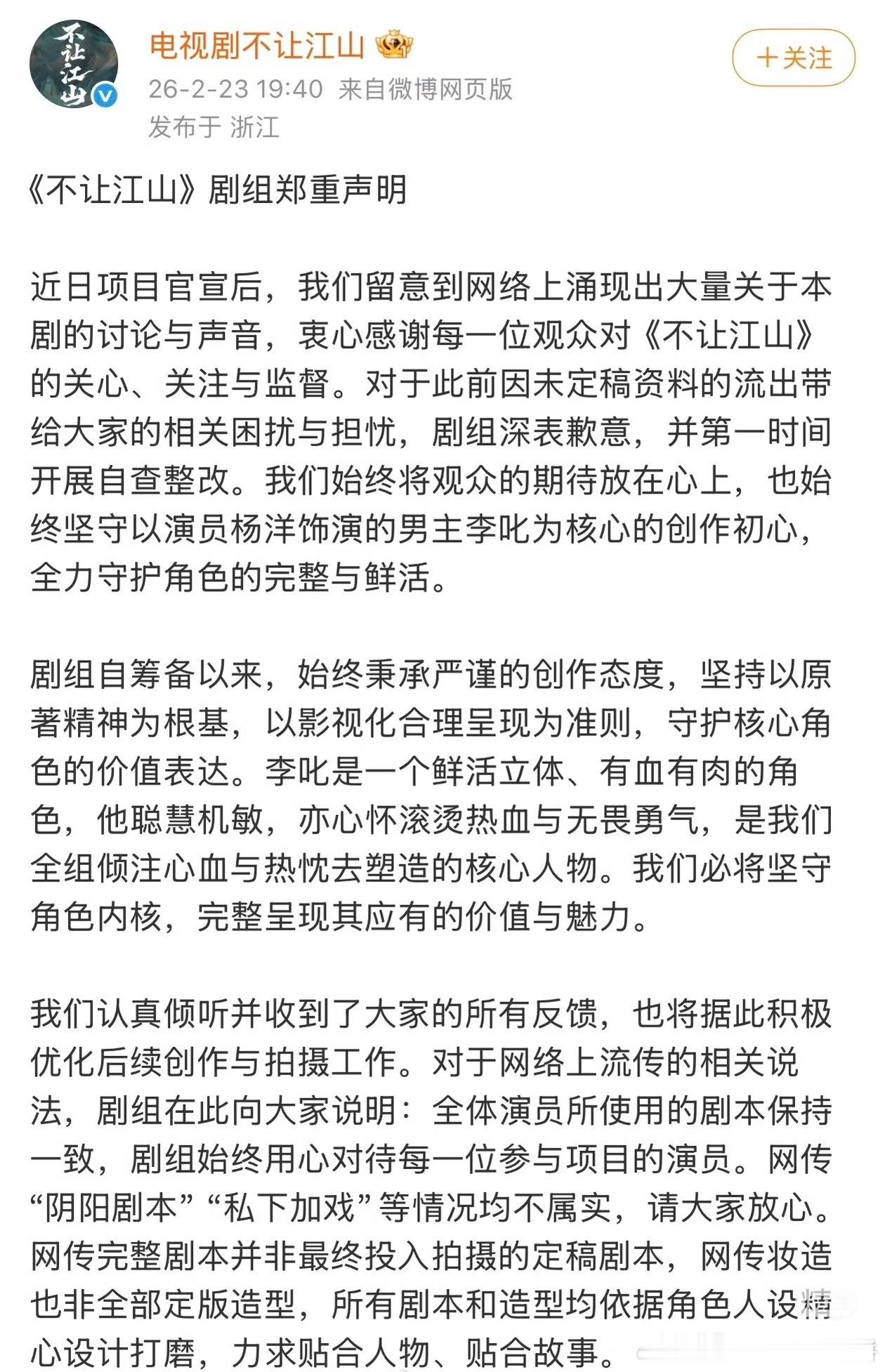 杨洋粉丝抵制厚本进组不让江山!《不让江山》的热搜一波接一波,这部剧官宣的演员阵