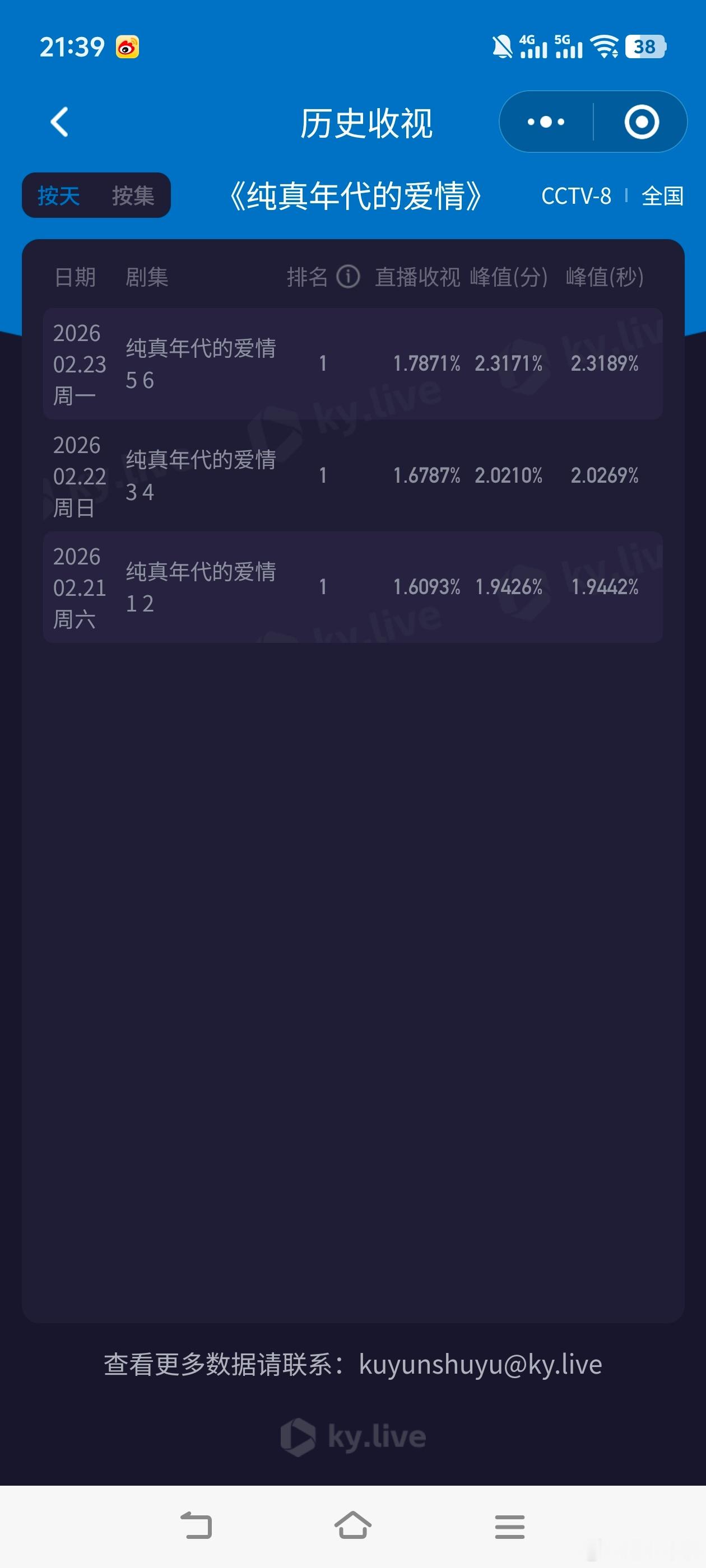 纯真年代的爱情 甜到尖叫走势看三天!陈飞宇 孙千《纯真年代的爱情》三天已过!目前走势很不错!天天涨!今晚酷云峰值和平均双双创新高!来看双集酷云走势:
