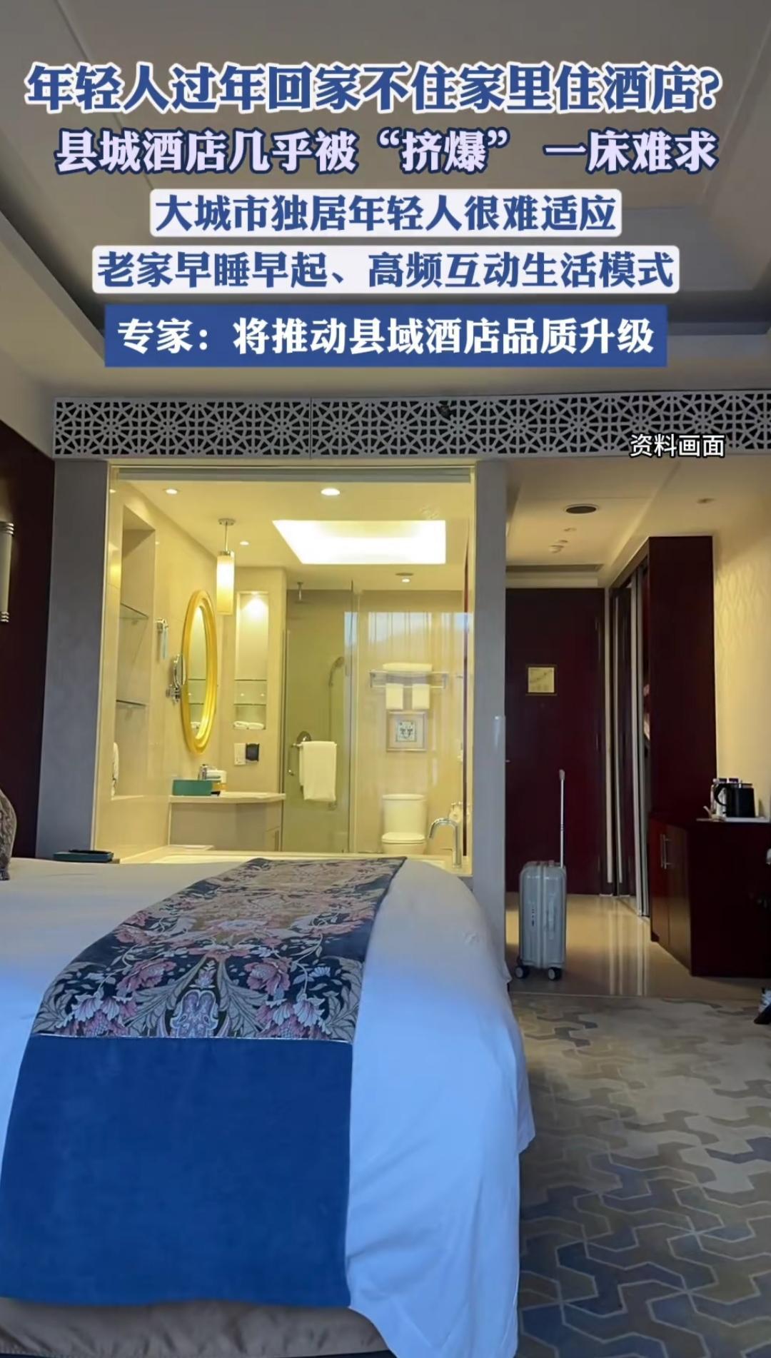 又是一年春节到,可现在的年轻人,一返乡就直奔县城的酒店,有家都不回。这背后,到底藏着怎样的无奈? 其实谁都不想,可实在扛不住。习惯了大城市的夜生活,回老家早睡早起的节奏根本熬不住。而且家里人多拥挤,生活品质也跟不上,最烦的还是过年那套,催婚、盘问薪资、七嘴八舌的应酬,住酒店反倒成了隐私和情绪的避风港。 这不是不孝,而是年轻人的务实。他们白天照样回家陪父母吃饭聊天,把陪伴拉满,只是晚上想回酒店歇口气,互不打扰。如今县域酒店也升级了,两三百块就能住得舒服,适配年轻人的预算。 长辈们也慢慢开窍了,不再死磕必须住家里,反而心疼子女在外打拼,更想让他们过个舒坦年。原来过年的团圆,从来都不是必须挤在同一屋檐下,而是彼此都舒服。