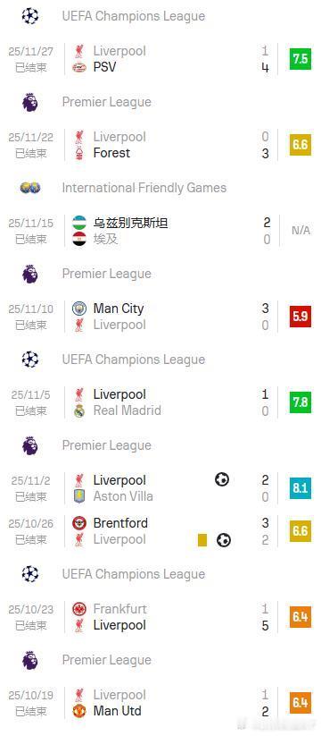 ▪️9场(利物浦/11月10日至今)▪️8场(切尔西/2014年4月至2015年1月)▪️6场(利物浦/2019年2月至3月)▪️6场(利物浦/2020年12月至2021年1月)
