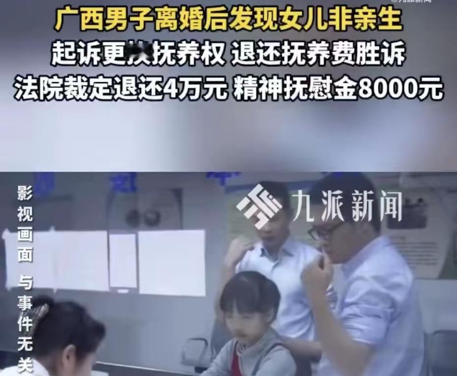 广西男子养了多年女儿,离婚一查竟不是亲生!法院判了!太让人心寒了,广西贵港一名男子,养了多年的女儿,竟然不是自己亲生的 想想都觉得不可思议啊! 蓝某和杨某2001年恋爱同居,生下两个女儿,2015年正式结婚。后来两人感情不和就觉决定离婚,小女儿一直跟着蓝某生活,由他一手拉扯大,感情也很棒棒。 可越养越觉得不对劲,蓝某越看越不像自己。于是他偷偷去做了亲子鉴定,结果如晴天霹雳:排除亲生父女关系!!! 好家伙,头上绿油油一片,这谁咽的下口气😤,蓝某彻底崩不住了,直接把前妻告上法庭。 法院查明,女方在婚内出轨怀孕,还一直隐瞒真相,过错极大。 最终判决:女儿归女方自己抚养,女方还要返还抚养费40000元,赔偿精神损害抚慰金8000元,哎这也算一种止损和补偿了吧。 付出这么多年感情却得这样的一个果子,属实委屈了!但法律终于给了老实人一个公道! 咱就说婚姻里最不能忍的就是欺骗了!不管是男方还是女方,真不想过了就赶紧分,不要祸害人啊。 大家觉得这个判罚合理吗? 养育非亲生女 婚姻里的残酷真相