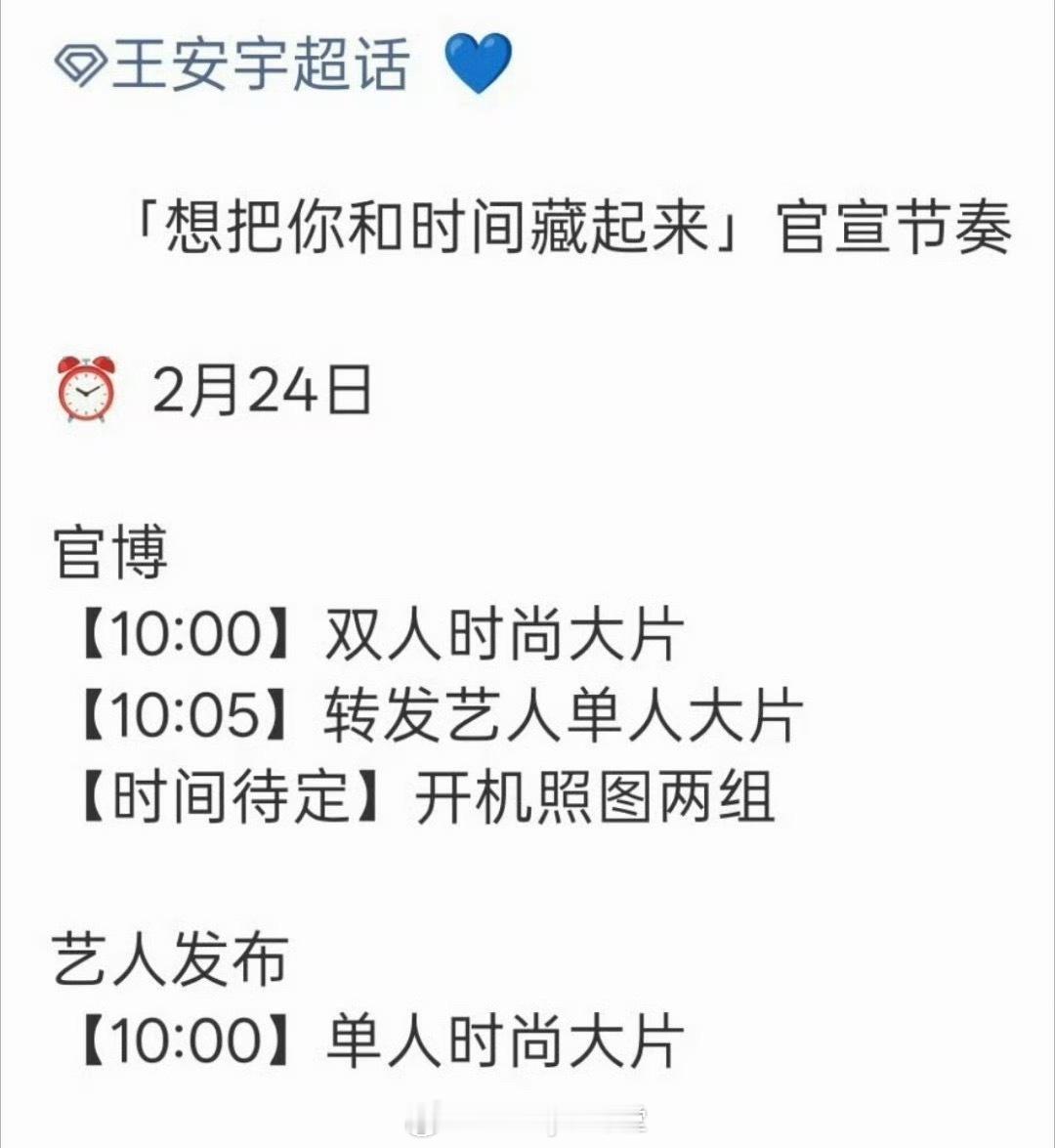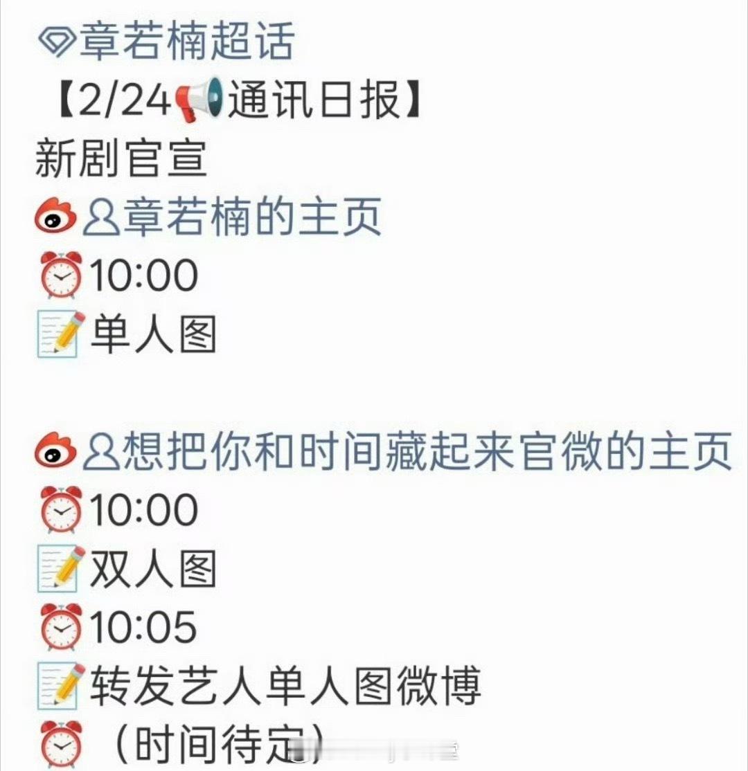 章若楠、王安宇《想把你和时间藏起来》明日官宣,看单人官宣时间一致,应该是平番吧