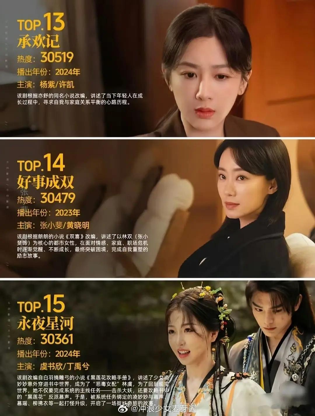 近几年腾讯出的热度破3万的剧集,没想到居然有22部而且大多都是古偶