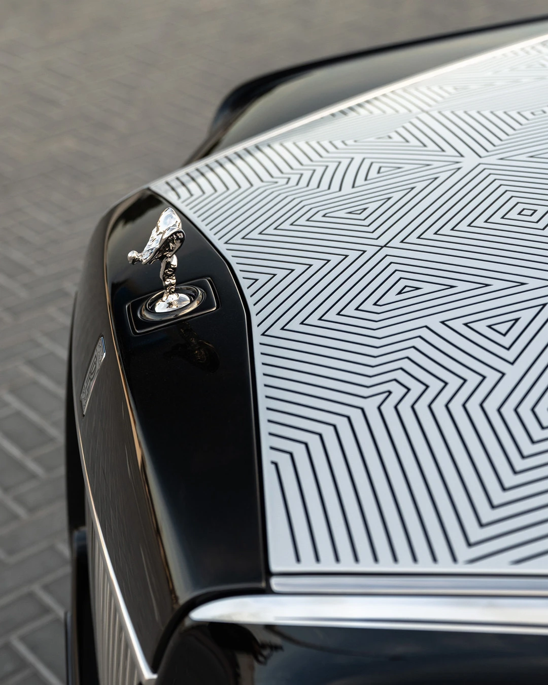 这款幻影阿拉伯花纹版是全球唯一的定制车型,首次采用激光雕刻引擎盖。由劳斯莱斯迪拜私人办公室策划打造,通过重新诠释传统木质屏风"mashrabiya"的格栅工艺——这种用于保障隐私与空气流通的建筑元素,致敬中东建筑遗产。