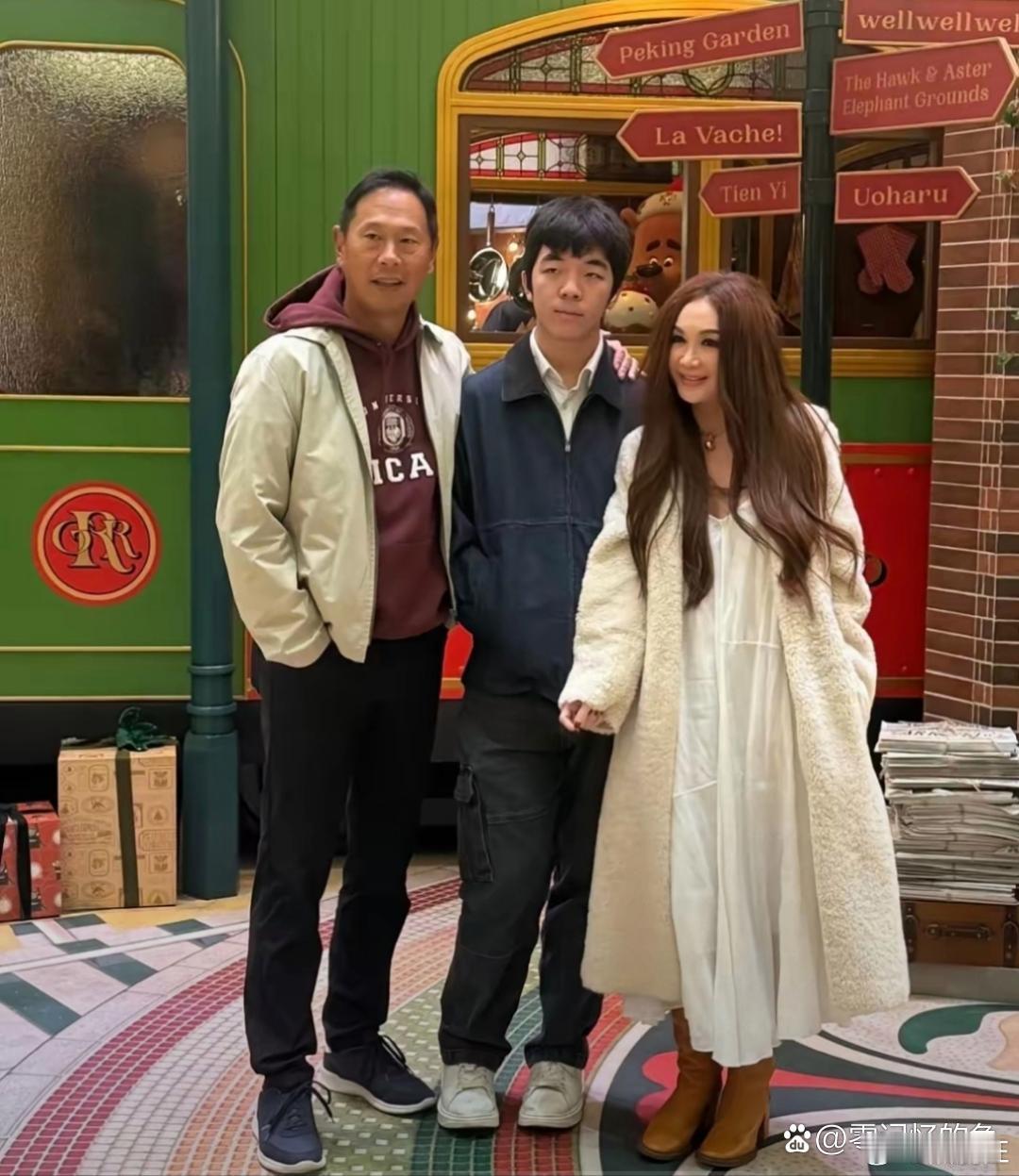温碧霞一家三口。