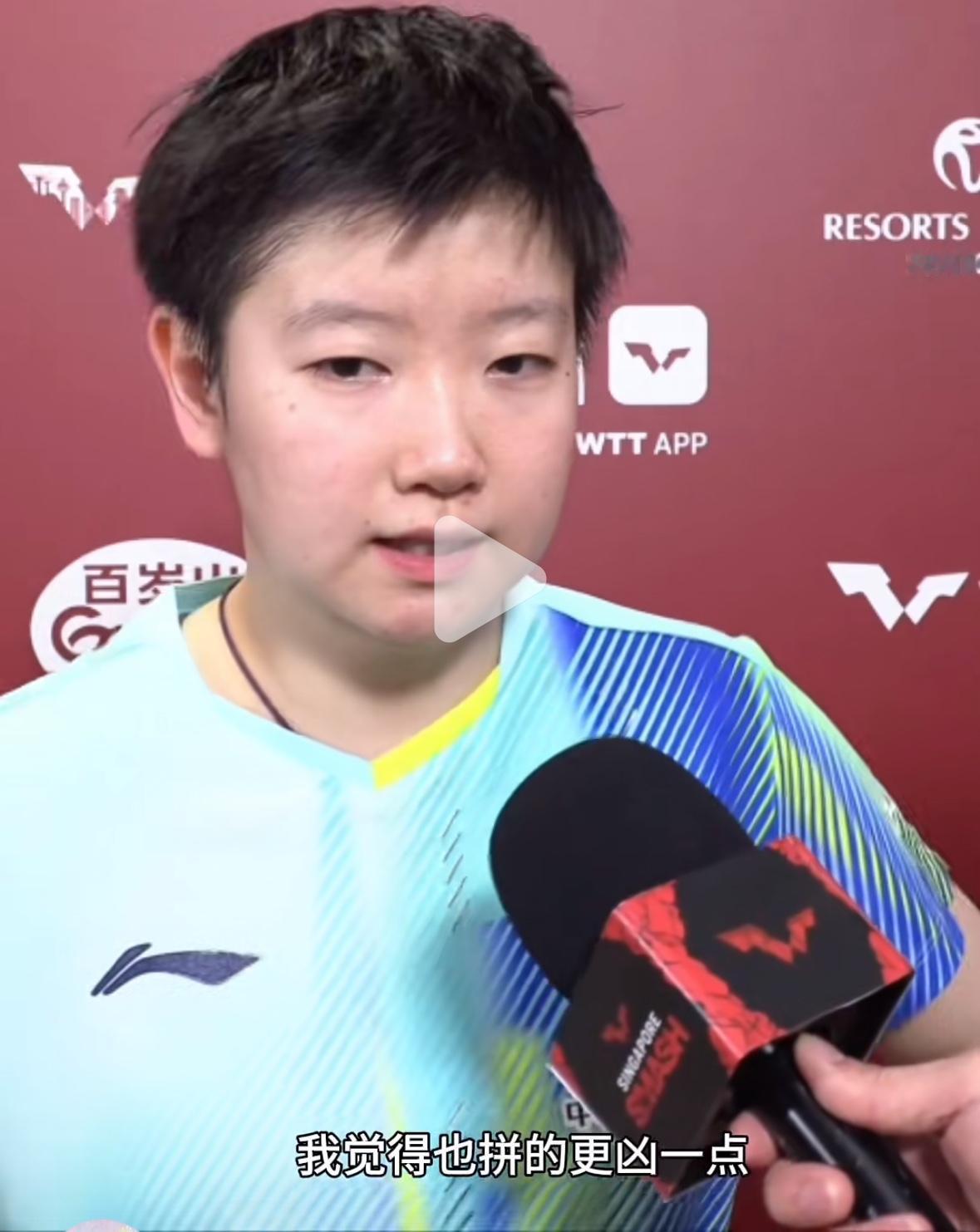 孙颖莎太幽默“现在每个人好她打都拼的很凶,发挥的特别好!” 2月23日新加坡大满