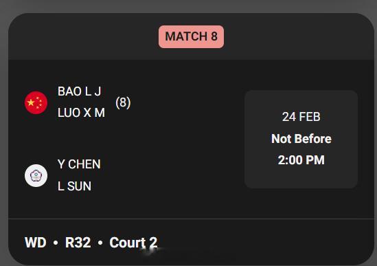 二号场第八场 女双 第一轮 鲍骊婧 罗徐敏 VS 陈妍妃 孙亮晴