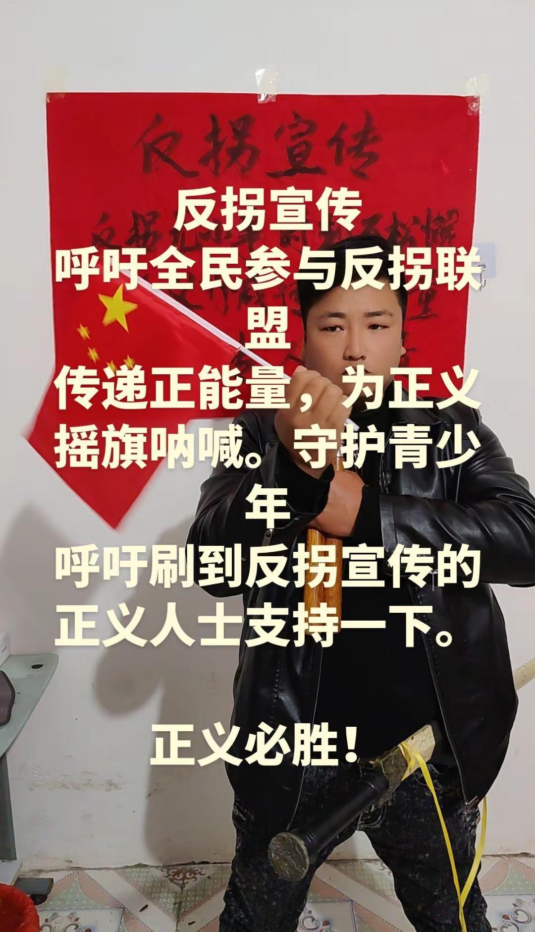 反拐宣传呼吁全民参与反拐联盟传递正能量,为正义摇旗呐喊。守护青少年呼吁刷到反拐宣传的正义人士支持一下。正义必胜!