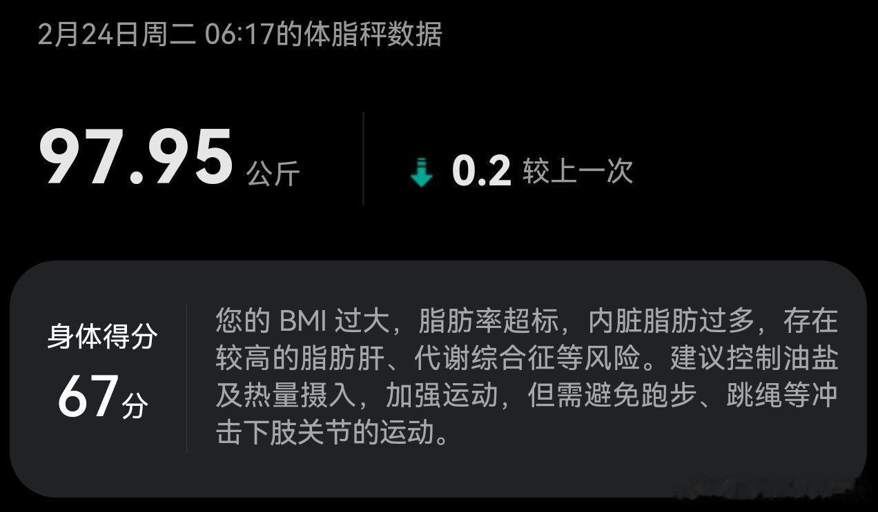 大阳的减重日志 day38: 97.95kg