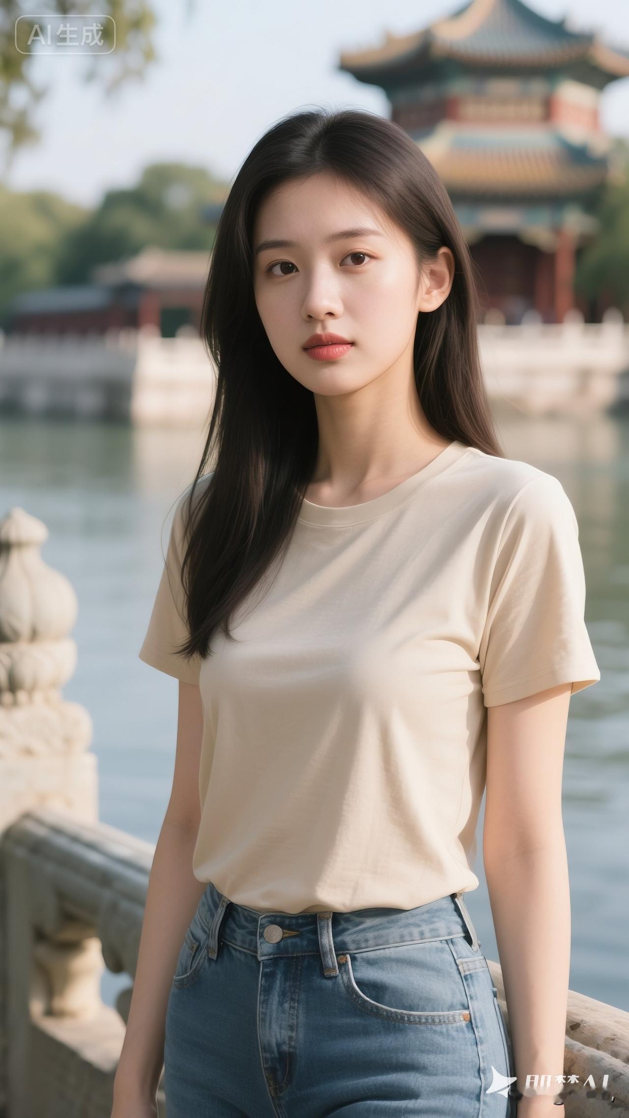 阳光下的她,笑容清澈,浅米色T恤与牛仔裤,轻松勾勒出青春的模样。 所以简单,就是