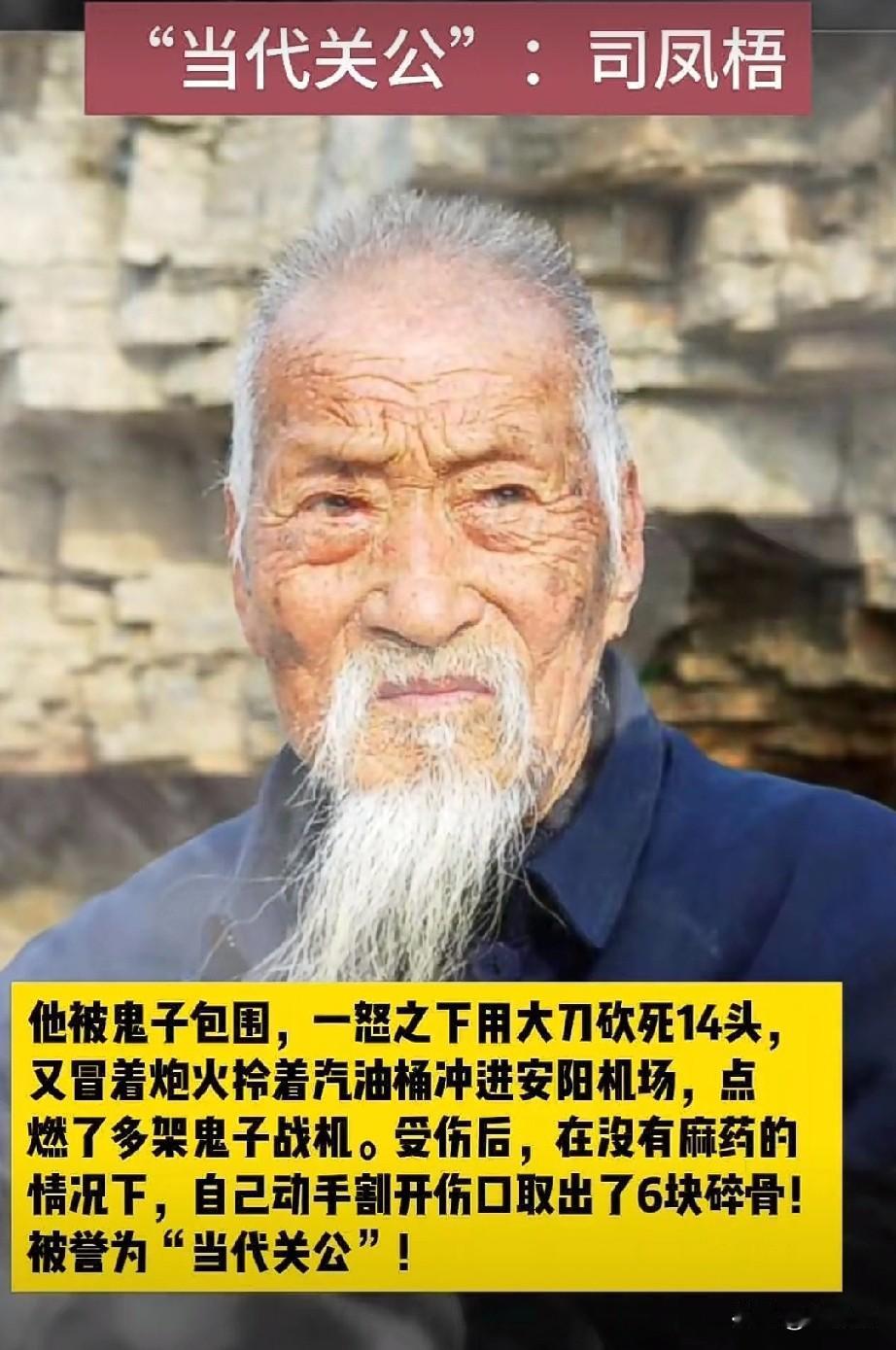 人民英雄永垂不朽 他是被誉为“当代关公”的司凤梧,被日寇包围时,一怒之下挥大刀砍死14名敌人。 他还冒着炮火拎汽油桶冲进安阳机场,点燃多架日寇战机。 受伤后,在无麻药的情况下,他亲手割开伤口取出6块碎骨。 英雄的血性,震彻山河;英雄的精神,永世流传。 请停留一秒,在评论区献上鲜花,致敬铁血硬汉司凤梧[比心]