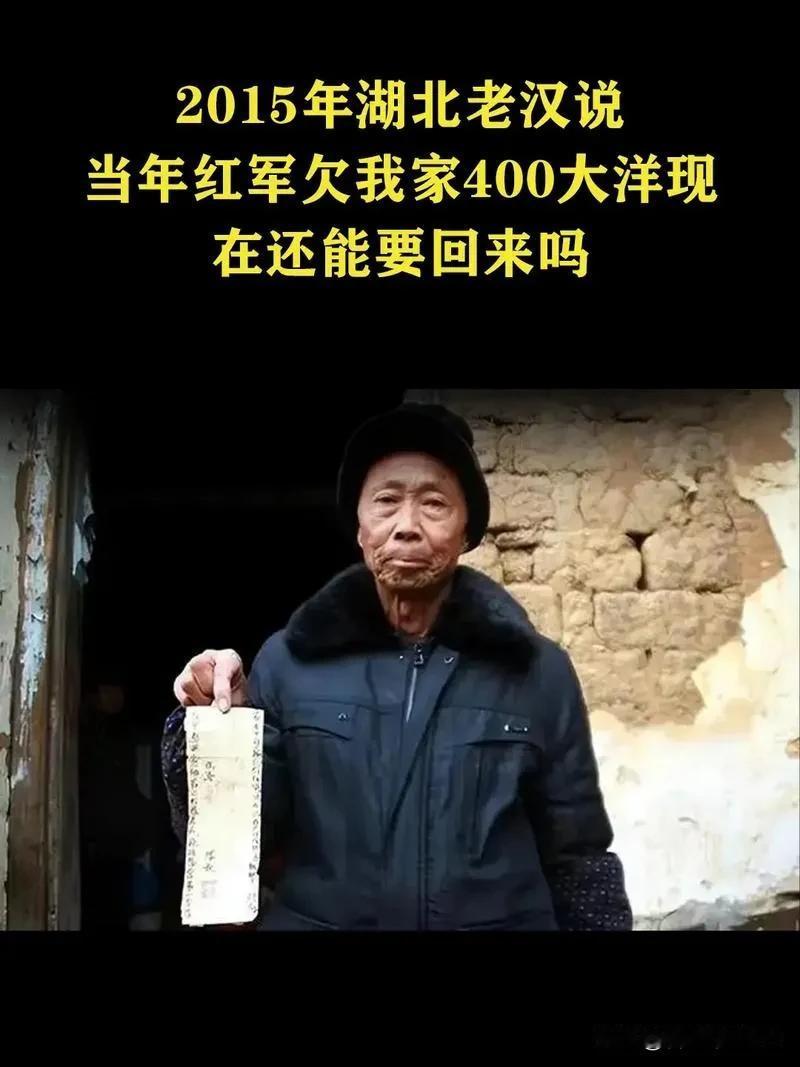 “红军欠了我们家400块大洋,现在可以还给我们了吗?”2015年孝感市人民政府,一位衣着褴褛的大爷拿着一破旧泛黄的旧纸条,敲开了当地领导的办公室大门。 他叫杨明荣,他轻声向工作人员开口:“同志,我爷当年借了400块大洋给红军,现在家里实在难撑,想问下,这笔钱还能还吗?” 工作人员没有丝毫怠慢,连忙接过老人手中的借条,仔细端详后耐心询问借条的来历与老人的生活状况。 杨明荣慢慢道出这段尘封的往事,这张借条出自1930年,他的爷爷杨长银当年是孝感当地的普通农户,家中略有积蓄,彼时鄂豫皖根据地的红一军路过孝感,部队物资极度匮乏,粮食、药品和基础装备都难以保障,只能向当地群众求助。 杨长银亲眼见过红军严守纪律、不扰百姓的作风,深知这支队伍是为百姓谋出路的队伍,他没有丝毫犹豫,拿出家中积攒多年的400块大洋交给红军。 红军战士坚持履行手续,用毛笔写下规范借条,加盖印章,明确承诺革命胜利后会如数归还,这份纸条就此成为杨家世代珍藏的物件。 杨长银在世时始终将借条妥善保管,从未向任何人提及讨要借款的事,他把支持革命当作分内之事,更愿意相信红军许下的承诺。 这份信念传给了杨明荣的父亲,父亲一生清贫度日,即便遭遇生活难关,也始终牢记祖辈的叮嘱,不愿拿着借条向政府提出要求。 两代人都把这份军民之间的信任看得重于一切,把一张薄纸当成家族的荣耀,在动荡与平淡的岁月里默默守护了近百年。 杨明荣年纪渐长后身体常年不适,家中没有稳定收入来源,日常开销和医疗费用让整个家庭陷入难以维系的困境,衣食住行都成了摆在眼前的难题。 他看着家中的窘境,又想起祖辈留下的借条,内心挣扎了无数个日夜,一边是不愿给政府添负担的本分,一边是实在撑不下去的现实,最终才鼓起勇气带着这张旧纸条走进政府大门。 他开口时语气轻缓,带着难以掩饰的忐忑,他不知道时隔多年借条是否还能被认可,更怕自己的举动违背了祖辈支持革命的初心,只是走投无路之下,才抱着最后一点希望前来询问。 工作人员深知这张借条背后的重量,它不是普通的债务凭证,而是烽火岁月里军民同心的真实见证,更是革命队伍信守承诺的历史印记。 他们立刻将情况向上级汇报,同时安抚老人情绪,让老人放宽心等待结果,绝不会忽视任何一段真实的革命历史,更不会辜负百姓的信任。 当地政府迅速启动核查流程,工作人员翻阅《孝感县志》等权威历史资料,核对当年红一军的行军轨迹与物资筹集记录,走访当地熟知历史的老人与专业党史研究者,对每一个细节反复核对确认。 多方查证的结果清晰明确,借条真实有效,当年的借款事实确凿无疑,400块大洋在当时是普通农户数年的收入总和,是杨长银倾尽所能为革命队伍提供的有力支持。 政府依据历史货币购买力与相关优抚政策,精准核算出合理的兑付金额,同时考虑到杨明荣的实际生活困难,同步协调解决了老人的医疗保障与居住修缮问题,用实际行动兑现跨越八十五年的承诺。 当工作人员把兑付的钱款送到杨明荣家中时,老人难掩心中的激动,眼眶始终泛红,他握着钱款反复念叨,爷爷当年的选择没有错,红军和政府从来没有忘记百姓的付出。 杨明荣没有随意支配这笔钱,他先用来解决家庭最紧迫的生活难题,余下的部分小心留存,他要把这段历史讲给后辈听,把这张借条和这份坚守继续传承下去,让子孙明白祖辈的选择,记住军民之间最真挚的情谊。 这段故事在当地流传开来,打动了无数人,一张旧纸跨越八十五年时光,连接起烽火年代与和平盛世,藏着百姓对革命的无私支持,也彰显着党和政府铭记恩情、信守承诺的不变初心。 红军当年依靠群众的支持走过艰难征程,和平年代里,国家始终把群众的付出与信任放在心上,每一段历史都被尊重,每一份承诺都被兑现。 一张跨越时光的借条,归还的是钱款,守住的是初心,传承的是永不褪色的军民鱼水情。 各位读者你们怎么看?欢迎在评论区讨论。