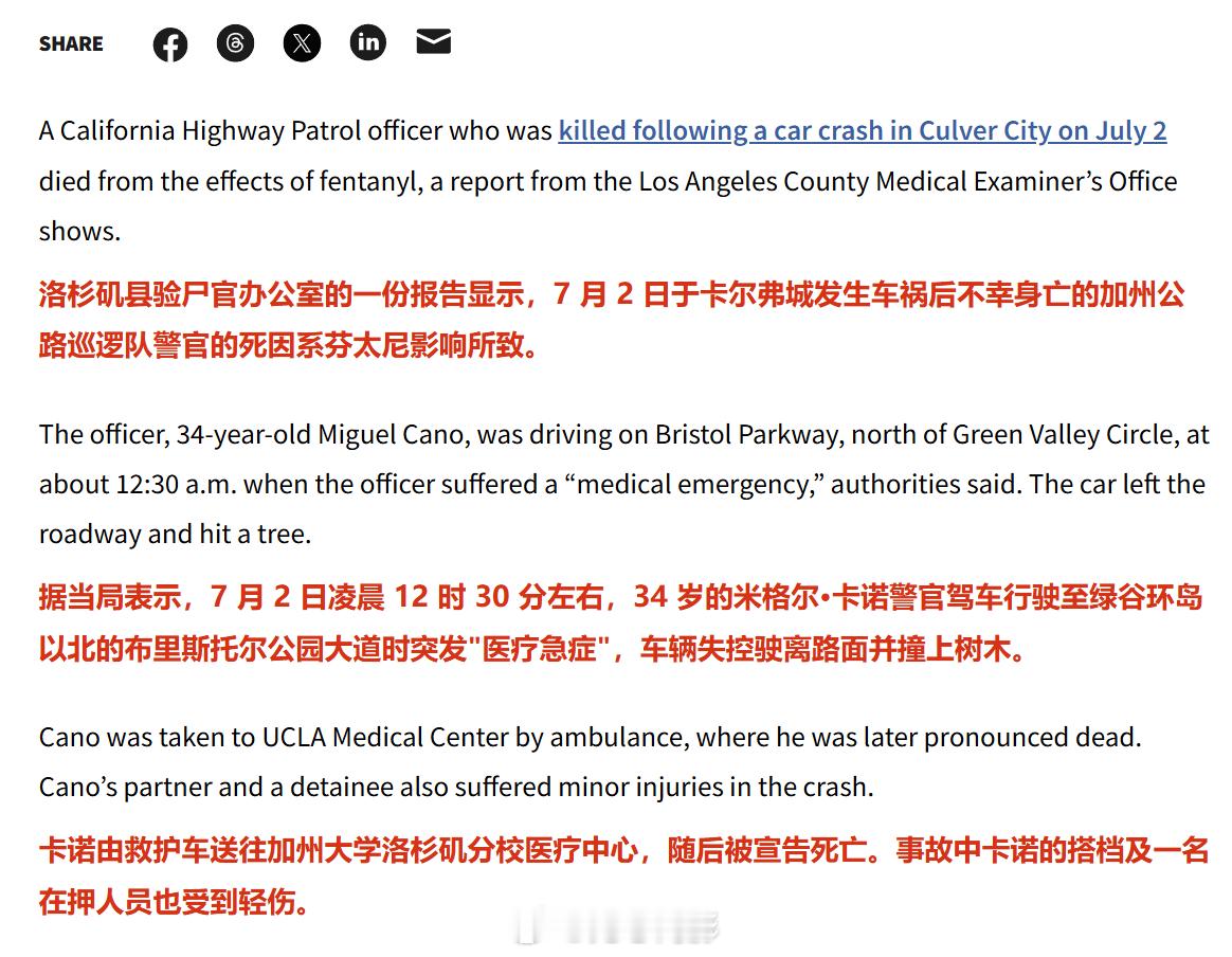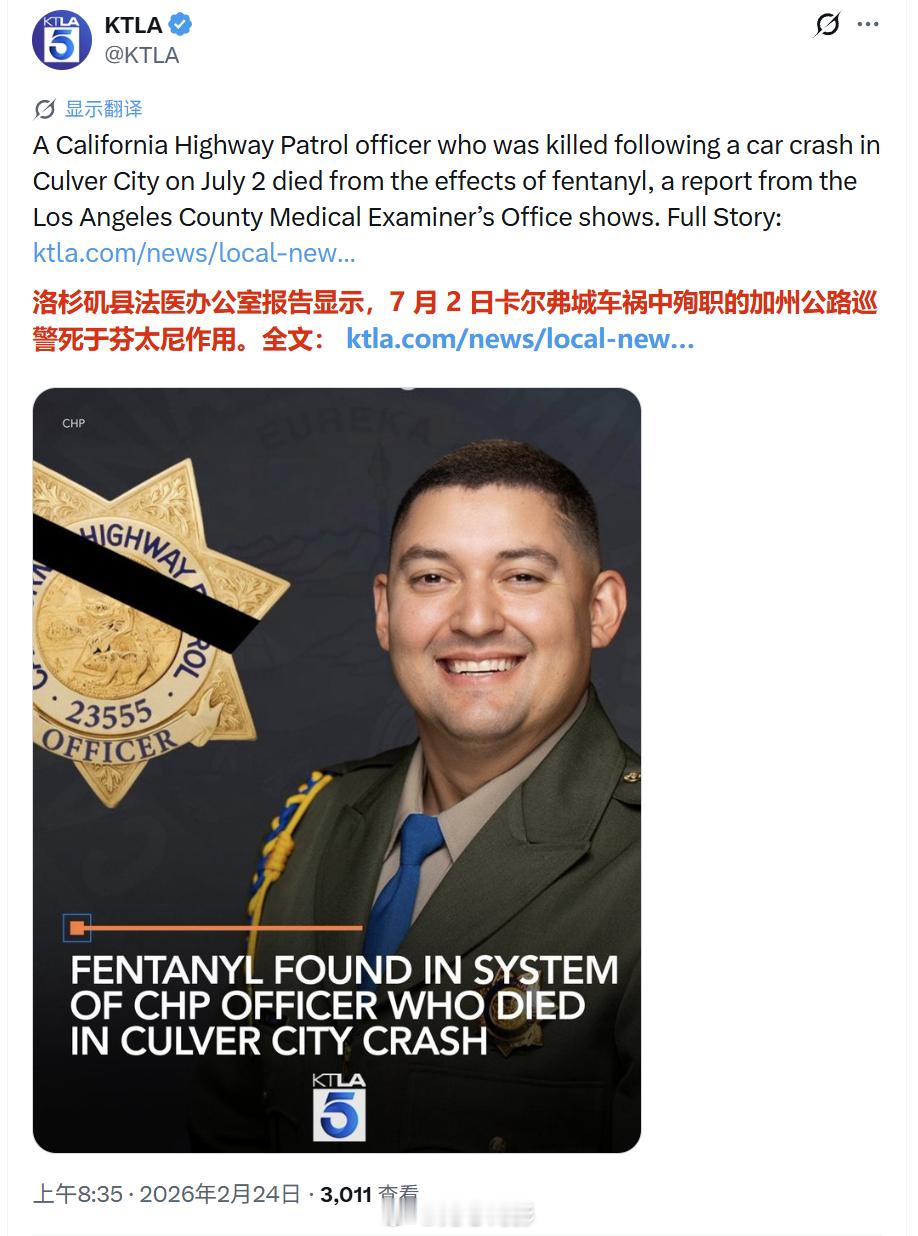 好吧,美国连警察都死于芬太尼……按理来说我不该感到意外海外新鲜事