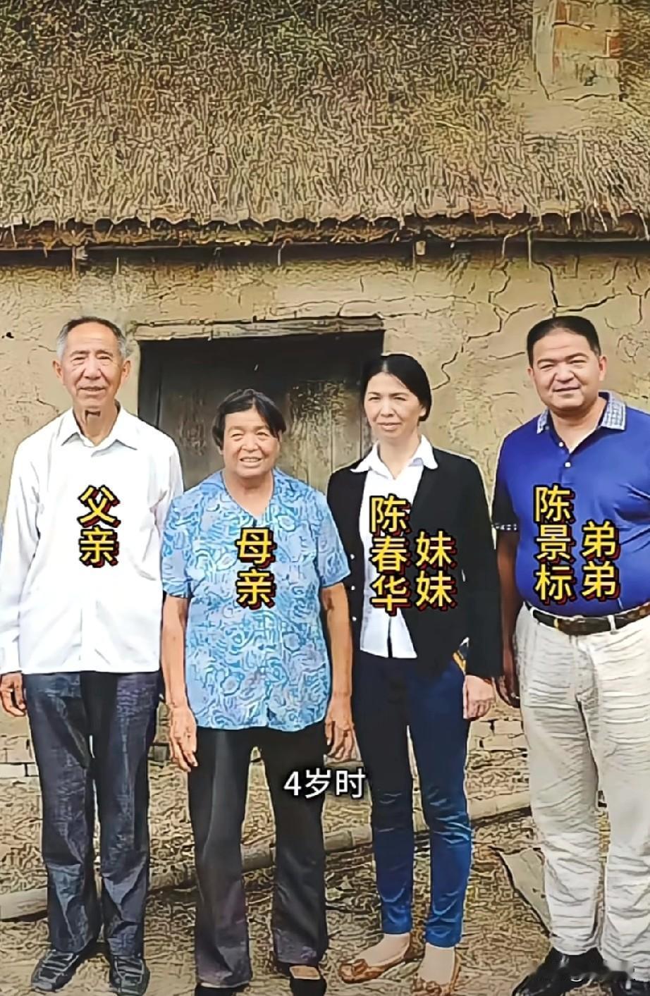 寒门出贵子 这是中国首善陈光标与父母以及弟弟妹妹在江苏老家茅草屋前的合影。