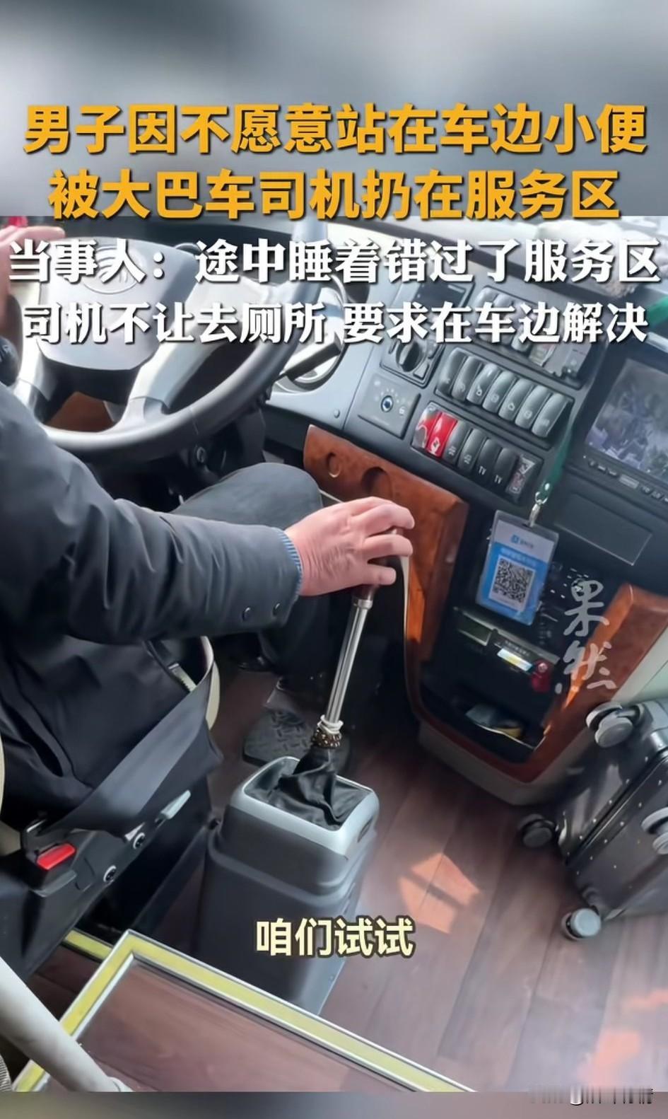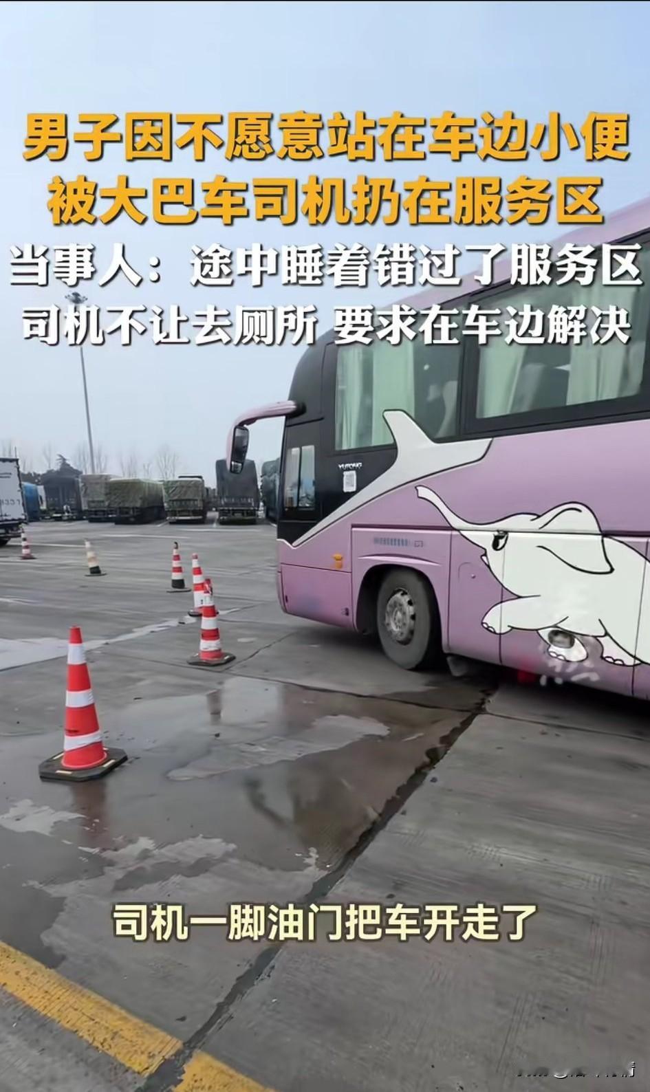 然后呢,你就按照司机要求,在大巴车边上,光天化日,众目睽睽之下当众小便?
