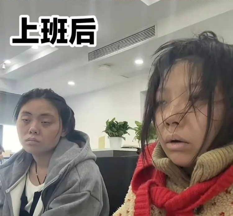 今日假期结束,又要开始做牛马了。 正是在家千日好,牛马一日难。 这不,这两个小仙女,上班之前还神采飞扬,精神焕发。只上了半日班,就如被霜打了的茄子,全蔫了。神无主,眼无光。 牛马不易做,可为了生活,还得要做!