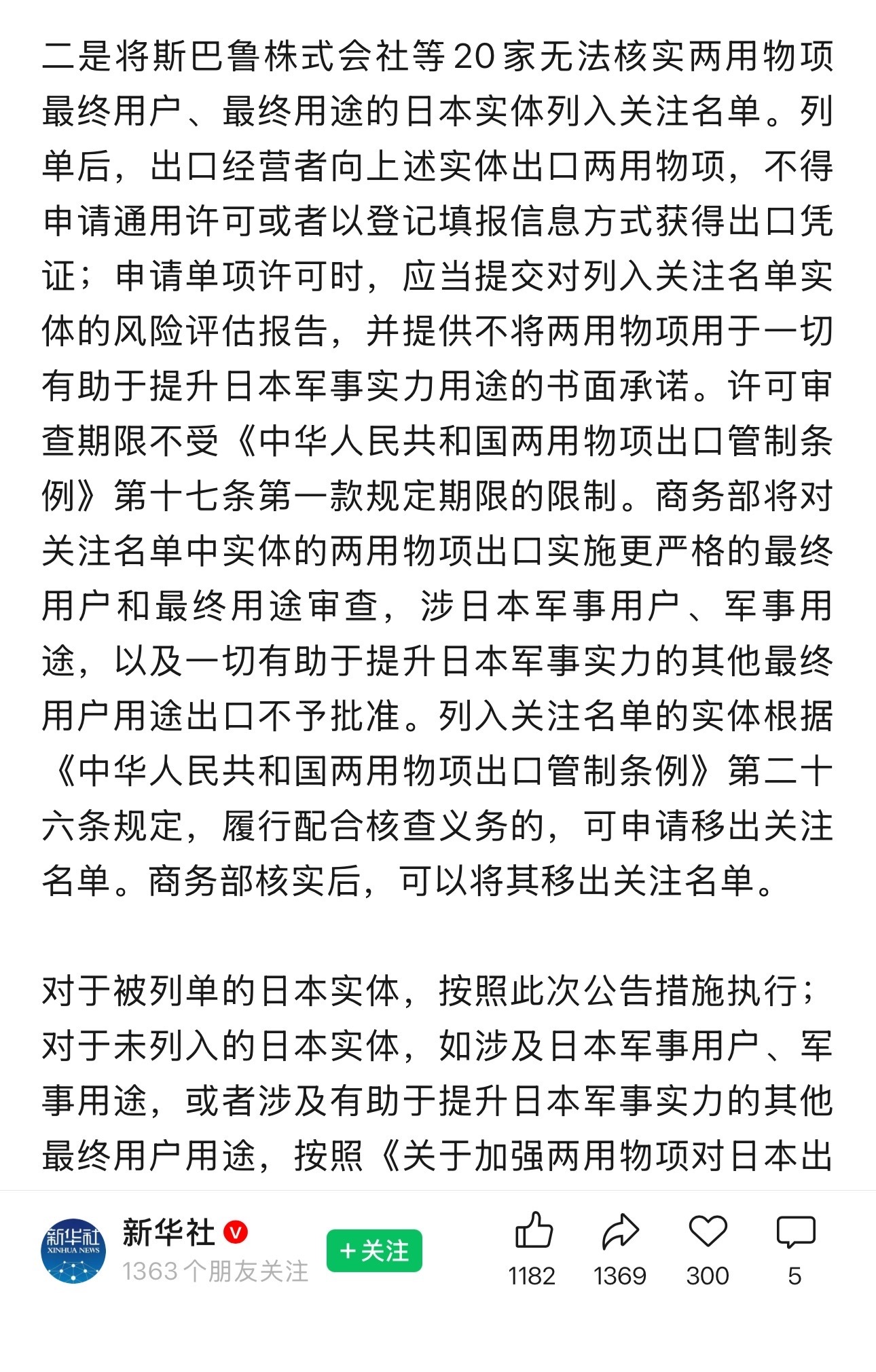 20家日本实体列入出口管制管控名单参与提升日本军事实力被出口管控 都是军工相关,在新华社的内容后段,也看到了还有一些辅助企业,斯巴鲁也在列。李楠说道李楠说道斯巴鲁大v聊车斯巴鲁