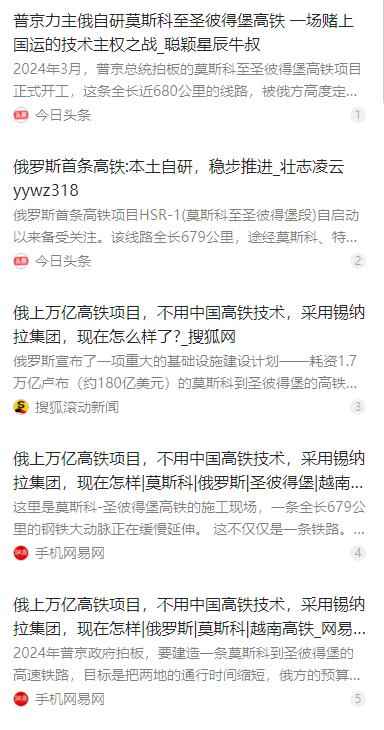 俄上万亿高铁项目,不用中国高铁技术,采用锡纳拉集团,现在怎样?原以为我国的高铁技术会在俄罗斯畅通无阻,却没曾想,俄罗斯宁愿让自家人摸着石头过河!这其实指的是俄罗斯已经落地近乎两年时间的首条高铁“莫斯科-圣彼得堡”高铁项目,但承包方却是俄罗斯锡拉纳集团,乍一看好像籍籍无名,实际不然,因为列车交付时间已定下。就在签订协议的四年后! 麻烦看官老爷们右上角点击一下“关注”,既方便您进行讨论和分享,又能给您带来不一样的参与感,感谢您的支持! 不少人原本以为,凭借成熟度与性价比双优的优势,中国高铁技术会顺利进入俄罗斯市场,成为当地大型基建项目的首选方案。 但现实走向和不少人预想的不太一样,俄罗斯在国内首条真正意义的高铁项目上,最终选择走自主研发路线,把核心任务交给本土企业推进,宁愿用更长周期搭建自己的高铁体系,也没有直接引入成熟的海外技术。 这件事的核心,就是俄罗斯在 2024 年正式启动的莫斯科至圣彼得堡高速铁路项目。这条线路连接俄罗斯两大核心城市,全长 679 公里,是俄联邦规划的高铁网络开篇工程,总投资规模达到万亿卢布级别,后续官方披露预算已上调至 2.3 万亿卢布。 从项目定位就能看出,它不只是一条交通线路,更是俄罗斯重塑国内交通格局、带动高端装备制造业升级的标志性工程,通车后两地通行时间将从 4 小时左右压缩至 2 小时 15 分,对区域经济与人员流动意义重大。 外界最关注的一点是,这项万亿级工程没有采用中国高铁技术,也没有依赖其他国家的成套方案,而是将列车制造与核心系统研发,交给俄罗斯本土的锡纳拉集团负责。 这家企业并非无名之辈,而是俄罗斯轨道交通领域的骨干企业,具备多年机车车辆研发生产经验,俄方把高铁项目交给本土企业,本质是把技术自主放在第一位,宁可放慢节奏,也要把关键技术握在自己手里。 按照俄方公布的计划,项目从 2024 年启动,目标 2028 年建成通车,列车交付与量产节点,基本设定在协议签署后的第四年前后,整体节奏明显偏向稳妥自主,而非快速落地。 很多人不理解,中国高铁已经在全球多个国家落地,技术成熟、工期可控、成本合理,俄罗斯为什么放着捷径不走,非要自主攻坚。 背后原因并不复杂,俄罗斯长期把交通装备与基建技术视为国家安全与产业主权的重要部分,高铁涉及轨道、信号、动力、制动等一整套体系,俄方希望从研发到制造实现全链条自主,避免在关键领域受制于人。 同时,俄罗斯也希望借助这条高铁,培育国内高端制造产业链,带动材料、电子、机械等相关行业升级,把项目变成本土工业升级的载体,而不是单纯的基建工程。 截至 2026 年初,项目已经启动接近两年时间,整体按照自主路线稳步推进,没有出现大规模停工或重大调整。锡纳拉集团按计划开展列车研发、测试与生产准备工作,相关配套企业也同步跟进,各项节点基本符合预期。 自主研发也意味着要面对更多挑战,俄罗斯地域辽阔、气候寒冷,部分路段需要适应低温与复杂地质,对车辆性能、轨道稳定性、信号可靠性都提出更高要求。 俄方没有选择直接照搬现有技术,而是针对本国环境重新设计与验证,这也是项目周期相对更长的原因。虽然外界会觉得进度偏慢,但对俄罗斯而言,技术吃透比速度更重要。 不少人会担心,这次没有合作高铁项目,会不会影响中俄之间的合作大局。答案是否定的,两国在基建、能源、电力、跨境物流等多个领域依然保持紧密协作,合作广度与深度都在持续提升。 高铁只是众多合作方向中的一个,俄罗斯在这个项目上选择自主,是基于自身产业规划的决定,不影响双方在其他领域的互利共赢。 从全球高铁发展来看,各国都会根据自身需求选择技术路线,有的国家追求快速落地,直接引进成熟方案;有的国家更看重自主可控,愿意投入时间与资金自研。 俄罗斯的选择,明显属于后者,万亿卢布投入、长达数年的研发周期,都是为了建立属于自己的高铁技术体系。 从目前进展看,项目没有因为自主路线而停滞,锡纳拉集团的研发与生产工作有序开展,路基、站房等土建部分也按计划推进,整体朝着 2028 年通车的目标前进。 这件事也让外界更清楚地看到,俄罗斯在重大基建与装备领域的战略取向,安全与主权优先,自主与可控至上,哪怕成本更高、周期更长,也会坚持走下去。 对于中国高铁而言,这并不是技术上的否定,而是不同国家基于不同战略做出的不同选择。中国高铁依然凭借综合优势,在全球市场保持竞争力,陆续在多个国家落地生根。 中俄之间的合作也不会因为一个项目的路线选择而受影响,双方互补性强、合作空间大,未来还会在更多领域实现互利互惠、共同发展。 莫斯科至圣彼得堡高铁的后续进展,依然值得持续关注,它不仅是俄罗斯的第一条高铁,也将成为观察该国高端制造业复苏与技术自主进程的重要窗口。