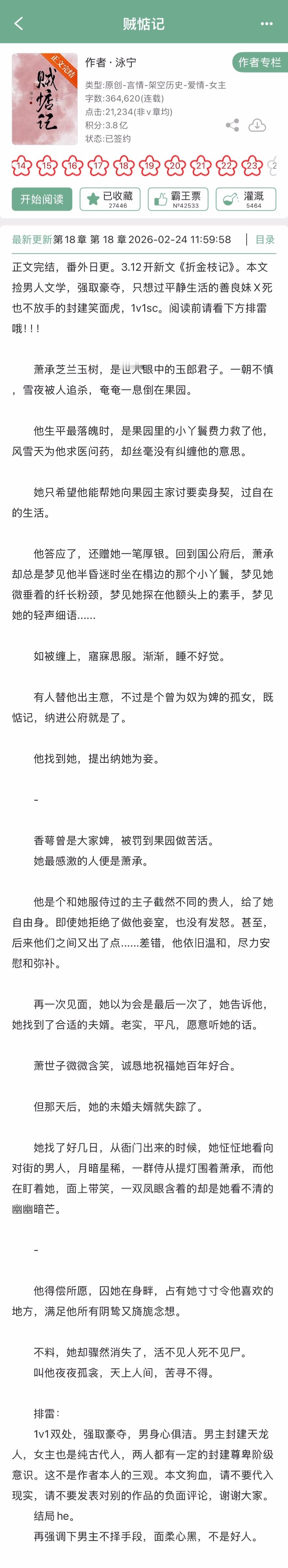 泳宁的《贼惦记》完结啦!古言➕强取豪夺,捡男人文学,只想过平静生活的善良妹x死也不放手的封建笑面虎贼惦记