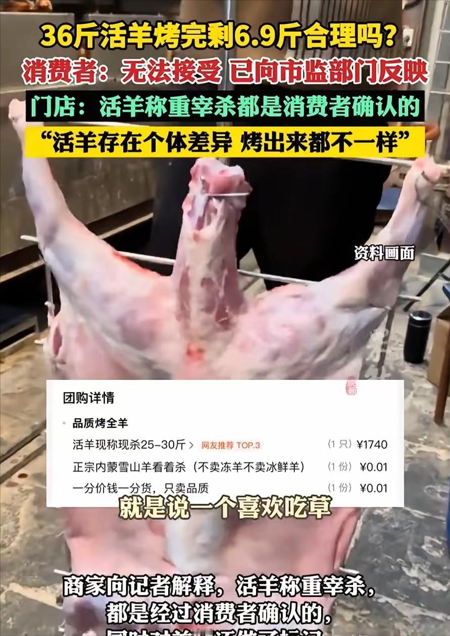 “这就太过分了!”重庆,女子一家人除夕夜没有在家做饭,而是到饭店花1188元点了一个烤全羊套餐,没成想,36斤的活羊烤完后就剩下6.9斤,女子当场报警,可店家却说:这是正常的! 早就说了,过年图省心别瞎折腾,结果还是有人栽了跟头。 除夕夜,重庆王女士一家为省事外出吃团圆饭,在某餐馆点了1188元的烤全羊套餐,店家承诺可现场挑选活羊并当面称重。 秤盘上的指针稳稳当当,36斤,白纸黑字。给羊腿做好专属标记,从宰杀到处理的全过程都在全程注视下完成,每一步都看得清清楚楚,整个流程规范透明,确保最终不会出现任何差错。 然后羊端上来了。 一家人大眼瞪小眼。这玩意儿……是刚才那只羊? 盘子里的"全羊"瘦得可怜巴巴,跟刚才那只膘肥体壮的根本不是一个量级。王女士当场就不干了,要求复秤。 老板摆了摆手,神色平静地解释:“食材经过烤制后,水分和体积都会自然缩减,最终成品大概只剩原先四成左右,这是正常的损耗情况,不用太过在意。" 较真?36斤的四成是14.4斤,不是眼前这点东西。这数学题,小学三年级都会算。 王女士不依不饶,店家死活不让秤开口。僵持之下,她掏出手机,直接报警。 制服一到场,秤终于"说话"了——6.9斤。 整整29斤肉,人间蒸发,凭空消失。 这下店家坐不住了,解释开始升级换代。 第一版:"烤完剩四成是行规,你们不懂行。" 第二版:"宰杀去内脏剩四成,烧烤再损耗一轮,两个四成叠加。" 听起来好像能自圆其说?但账不是这么算的。就算去内脏剩14斤,烤完再打六折也该有8斤多。6.9斤,怎么凑都凑不上。 于是第三版解释横空出世,堪称年度最佳玄学发言—— "羊有个体差异,爱运动的羊和不爱运动的羊,烤出来不一样。" 好家伙,这只羊怕不是练过马拉松的,肌肉全是精瘦型,一烤就蒸发。 这解释一出,网友们瞬间炸锅,全网化身"神算子"开始算账。 有人掏出计算器:1188元除以6.9斤,约等于172元一斤。这价格,买的是羊肉还是黄金?澳洲和牛都没这么贵吧? 有人提议:再烤一只对照组,当场验证。立刻被"个体差异论"堵了回去——老板说了,每只羊都不一样,没有可比性。你烤一百只,我有一百个解释。 还有经验派现身说法:烤羊确实缩水厉害,水分流失、油脂滴落,剩四分之一都有可能。但四分之一是9斤,不是6.9斤。那消失的2斤多,又跑哪儿去了? 阴谋论也没缺席:羊腿标记了又怎样?谁知道后厨那段时间有没有被"顺"走几刀肉?反正消费者又看不见。 2 月 23 日夜间,相关话题在微博平台引发广泛关注,热度持续攀升,最终登上热搜榜首位,成为当晚全网讨论度最高的内容。一顿被搅黄的年夜饭,愣是变成了全网围观的消费奇案。评论区吵翻了天,有人骂店家黑心,有人说消费者较真,还有人开始科普烤全羊的"行业潜规则"。 说白了,这事儿戳中的是所有人的痛点——活体计价这种模式,消费者到底怎么才能不当冤大头? 你看着是36斤的活羊,可从活羊到烤羊,中间那段"黑箱",谁来监管?食材处理、烤制都集中在后厨操作,顾客无法直观看到制作与称重环节,食材实际用量、损耗情况,大多只能由商家自行核算告知,消费者缺少直观核对的渠道。你要较真,人家有一百种说辞等着你。你不较真,那就只能认栽。 更离谱的是,这种事根本不是个例。评论区里一堆人现身说法,什么海鲜称完换小的、活鱼捞上来偷偷换死的、螃蟹绑的绳子比螃蟹还重……套路五花八门,防不胜防。 王女士就相关事宜已向有关管理部门提交诉求,当前相关流程正在正常推进中,双方仍在等待后续协调处理。真相或许尚未完全抵达,但许多显而易见的问题,早已清晰地摆在我们面前,无需刻意遮掩,也不必回避,是非曲直,自有公论。 这种"活体计价、后厨加工"的消费模式,如果没有透明的监管机制,消费者永远是睁眼瞎。你以为亲眼看着就万无一失?人家后厨的操作空间大着呢。 1188元,买的本该是一顿热热闹闹的团圆饭,一家人围坐一起,吃肉喝酒,图个喜庆。 结果呢?剩下的只有一肚子窝囊气,和6.9斤说不清道不明的羊肉。 这个年,王女士一家过得是真够呛。 而那消失的29斤羊肉,大概永远都是个谜了。 参考信息:36斤活羊烤完剩6.9斤!商家解释气炸消费者,网友纷纷化身"神算子"↗2026-02-24 09:08·九派快讯