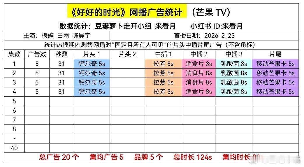 好好的时光代入感《好好的时光》芒果TV首日网播广告数据:开局5广!很不错!