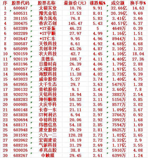 2月24日,KDJ日线金叉的30名单汇总 太极实业:最新价 10.76元,涨幅 +9.91% 豫光金铅:最新价 17.53元,涨幅 +8.01% 海力风电:最新价 76.80元,涨幅 +5.83% 香农芯创:最新价 145.47元,涨幅 +5.43% ST亚振:最新价 46.23元,涨幅 +5.00% ST宇顺:最新价 27.97元,涨幅 +4.99% ST仁东:最新价 9.95元,涨幅 +4.96% 天铁科技:最新价 6.61元,涨幅 +4.92% 共创草坪:最新价 43.26元,涨幅 +4.87% 农大科技:最新价 42.70元,涨幅 +4.45%