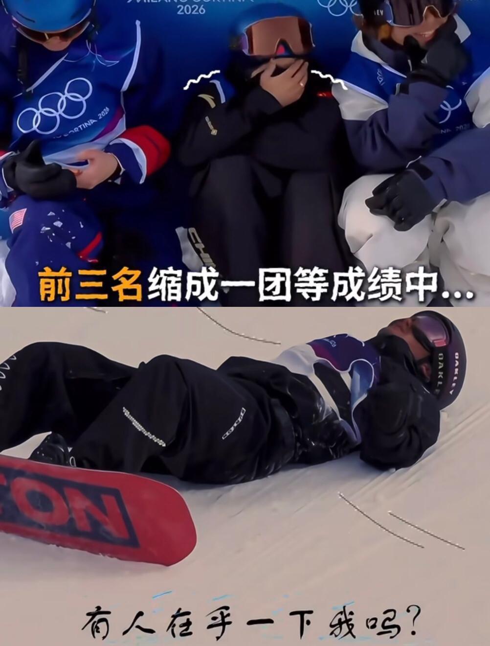 这幅世界名画如今有了新名字, 一个人的成全, 好过三个人的纠结。 暂时的1 2 3名在看最后一名选手比赛, 最后一个选手的竞争力特别强可以冲很高分,当时的前三名非常紧张, 金牌怕丢金, 铜牌怕没牌, 银牌最多银变铜稍微淡定一点。 结果, 那个选手失误了……