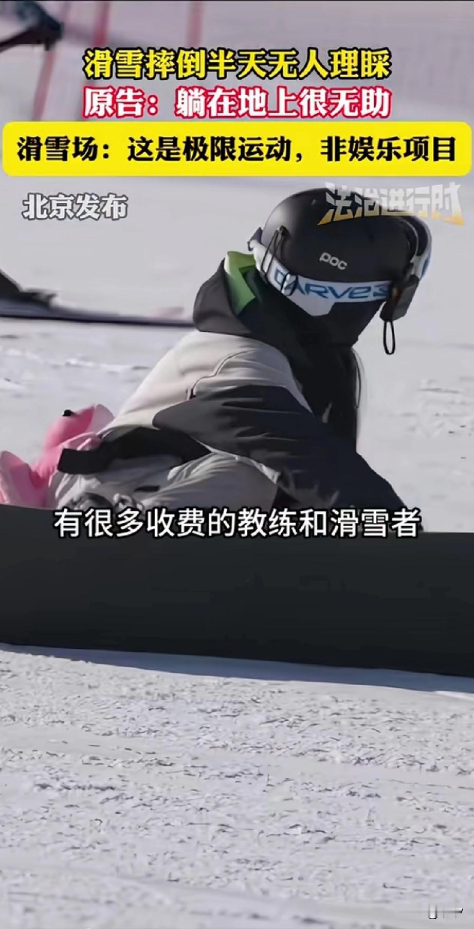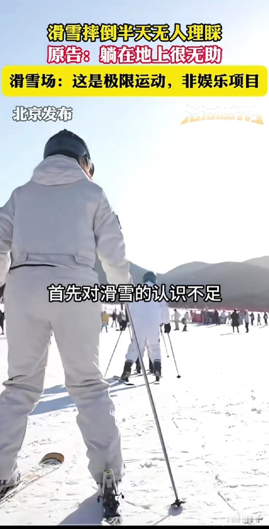 女子在滑雪场滑雪摔倒, 很多收费的教练和滑雪游客, 他们都看见了,却不救助我, 我躺在地上非常的无助, 感觉他们都很冷血, 随后她大喊救命, 还有一位好心的阿姨给她拨打了120, 事后女子生气的将滑雪场告上了法庭, 滑雪场表示这是极限运动,并非娱乐项目,风险自然要自己担着, 她的摔倒跟滑雪场毫无关系, 现在很多人没有任何滑雪基础, 这非要来滑雪场一试高下, 受伤了又怨这怨那的, 实际上都是他们自己的责任, 毕竟滑雪可是一个极限运动, 受伤在所难免, 双方因为产生分歧, 最后只能通过法院判决了, 在滑雪场受伤之后, 收费的教练和游客之所以不救援, 就是因为怕被讹, 毕竟现在这样的事太多了, 他们也是想逃避责任! 女子这样怨恨别人就不对了, 毕竟非亲非故的, 这就是社会心理缺失的影响了! 大家对于女子这样的滑雪经历怎么看? 滑雪意外事故 滑雪翻车 滑雪不慎摔伤