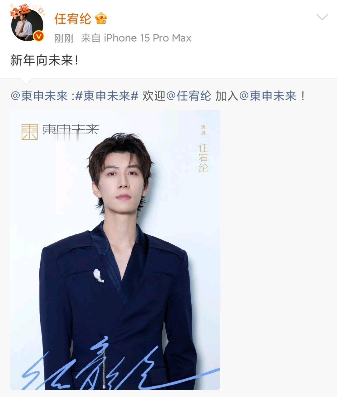 任宥纶加入东申未来官宣喜讯✨任宥纶正式加入东申未来!颜值与演技双在线,实力与潜力齐飞,加入优质大家庭,开启演艺新征程。以热爱为光,以作品为证,期待未来解锁更多精彩角色,一路璀璨前行🌟任宥纶东申未来