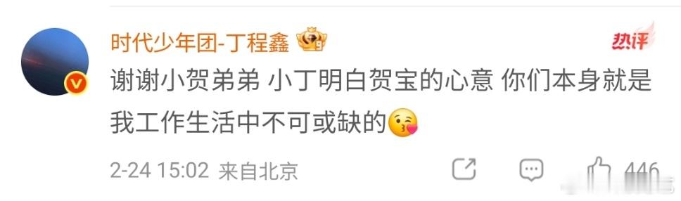 丁程鑫谢谢小贺弟弟哎呦喂小丁还是这么会表达爱,你也是我们生命里不可或缺的丁程鑫小丁明白贺宝的心意丁程鑫说时团是工作生活中不可或缺的