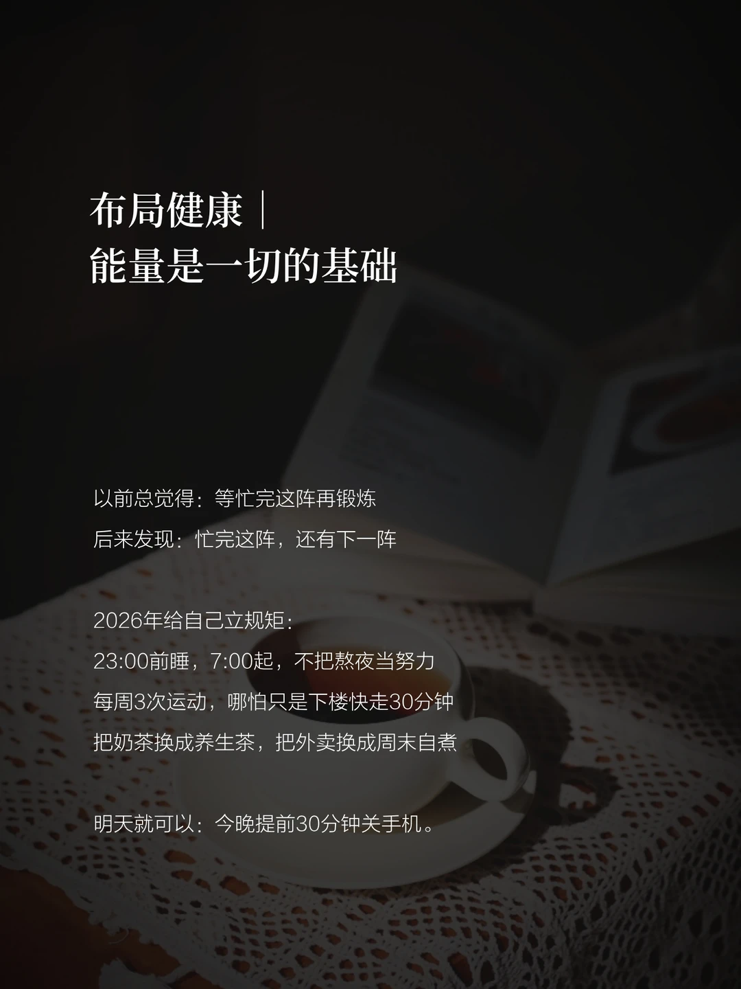 ✅明天就可以:今晚提前30分钟关手机。