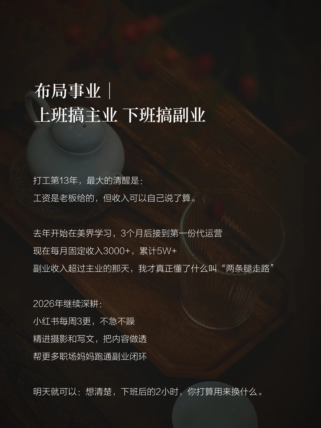 想清楚,下班2小时打算用来换什么。