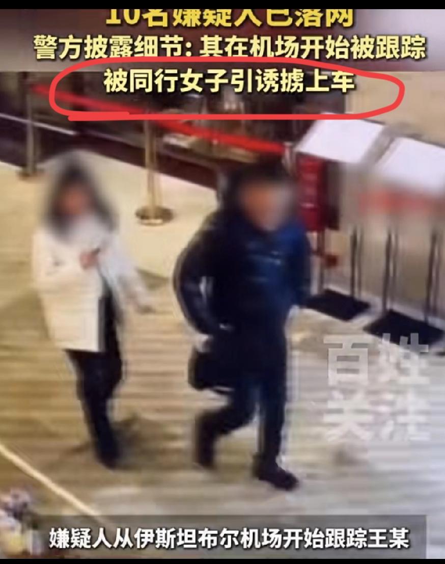 浪漫土耳其不浪漫,38岁商人王某魂断土耳其,死状悲惨,被人胶带捆绑垂直埋到庄稼地里。 抓到的10名嫌犯里,唯一的女性就是在机场引诱他上车的女人。 1月19号王某与女子用餐后失联,1月24日王某的律师报J。 视频里的女人身材苗条,披肩长发,跟在王某身后用手机发信息,王某一回头她马上就把手机放下,看着很乖巧的模样。 等到了外面,王某就被四个大汉塞进车里,视频里能听见惊恐的喊叫声。 这群人抢人抢车抢手机(车在事发当天被遗弃),说是嫌犯与他有债务纠纷,转移资产后杀人抛尸。 色字头上一把刀,这句话到哪个时代都有含金量。