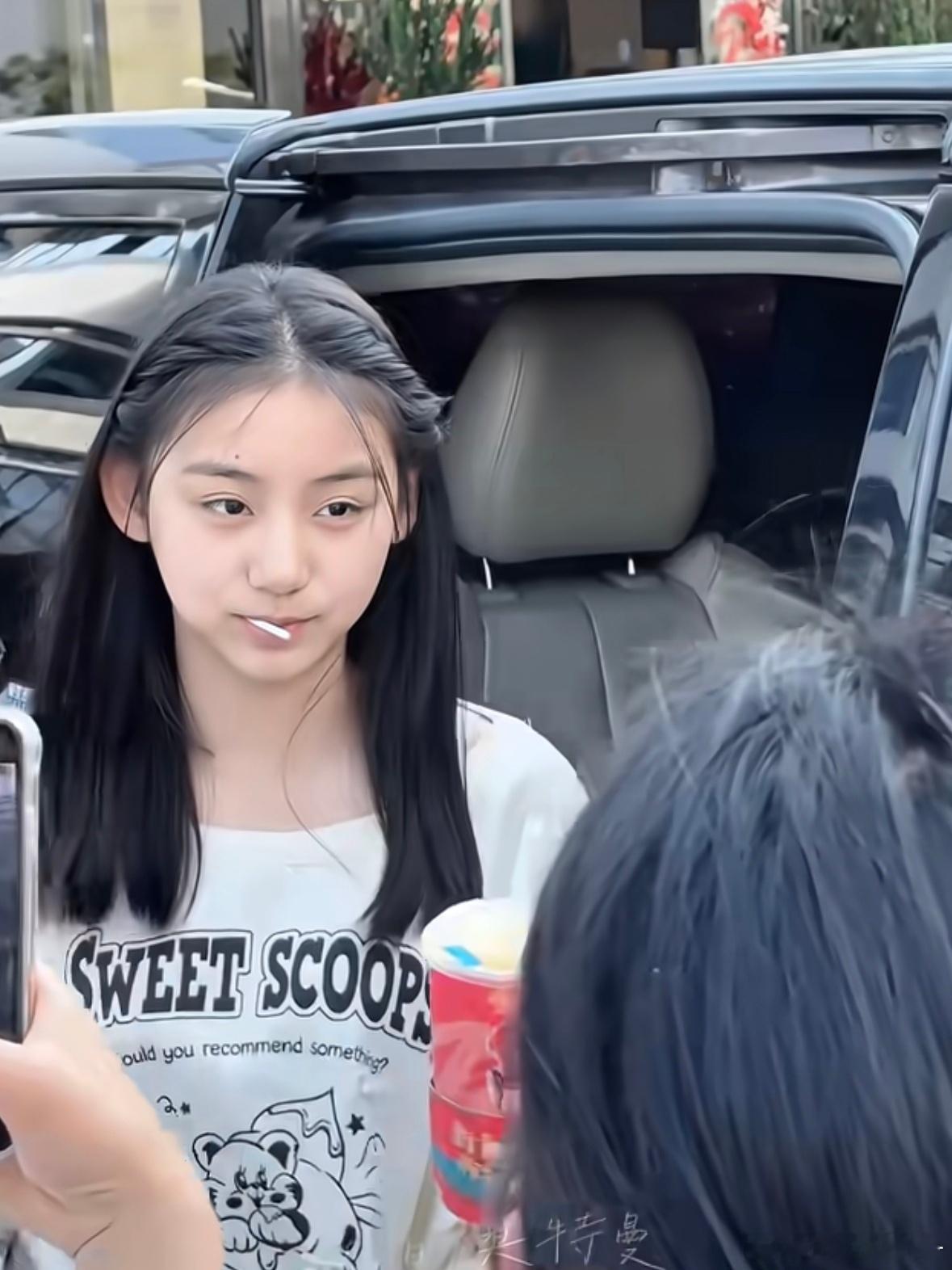 张天爱跟素人合影,胯真的好宽,大宅院似的