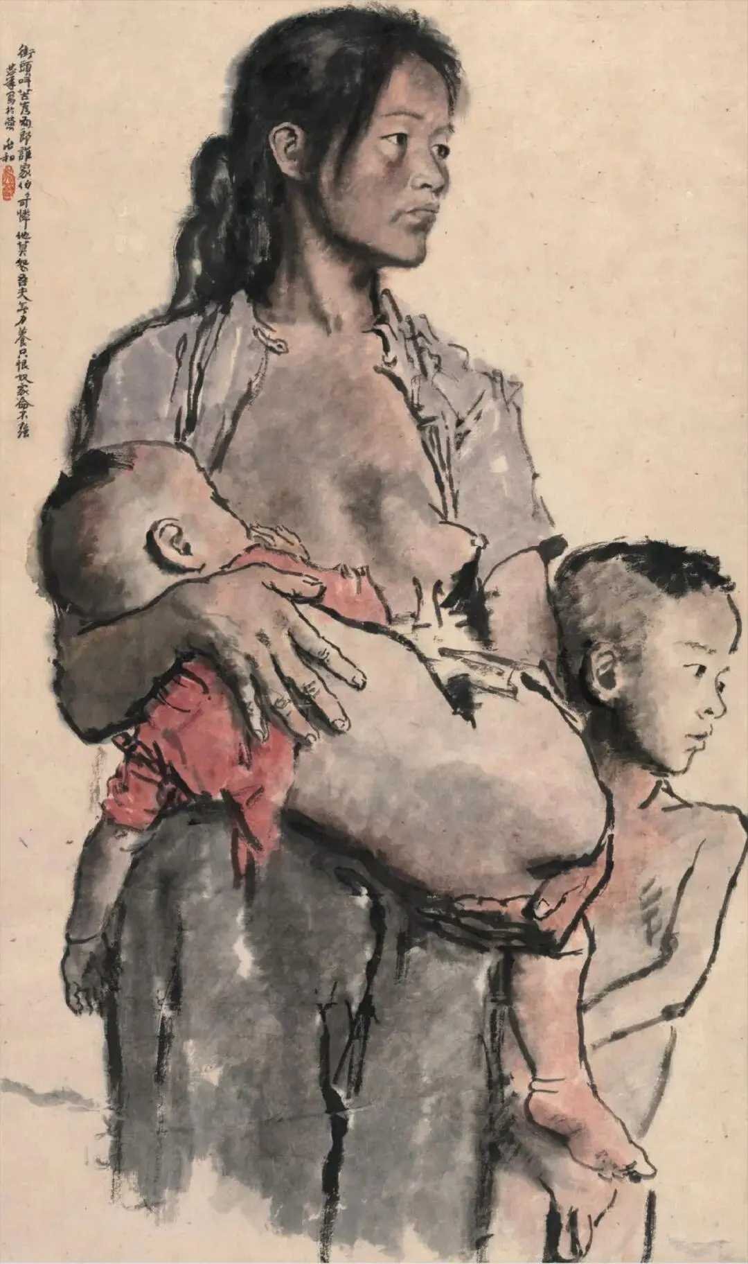 蒋兆和为民写真的现实主义精神,开创了中西融合的现代水墨人物画新路。他以中国画的纸、笔、墨结合西画的素描与造型技巧,创造性地将山水画中的“皴擦”技法用于人物面部和衣纹描绘,同时,结合素描的明暗关系来表现体积和结构,达到了拙涩老辣、精微传神的艺术效果,具有极强的艺术感染力。这就是中国风遇见艺术