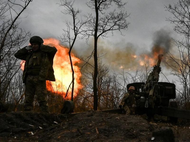 图:俄军在扎波罗热战线投入重兵强攻,乌克兰守军在防线上以火炮激烈还击;图为乌军在前线朝俄军阵地发射榴弹炮。 (路透)