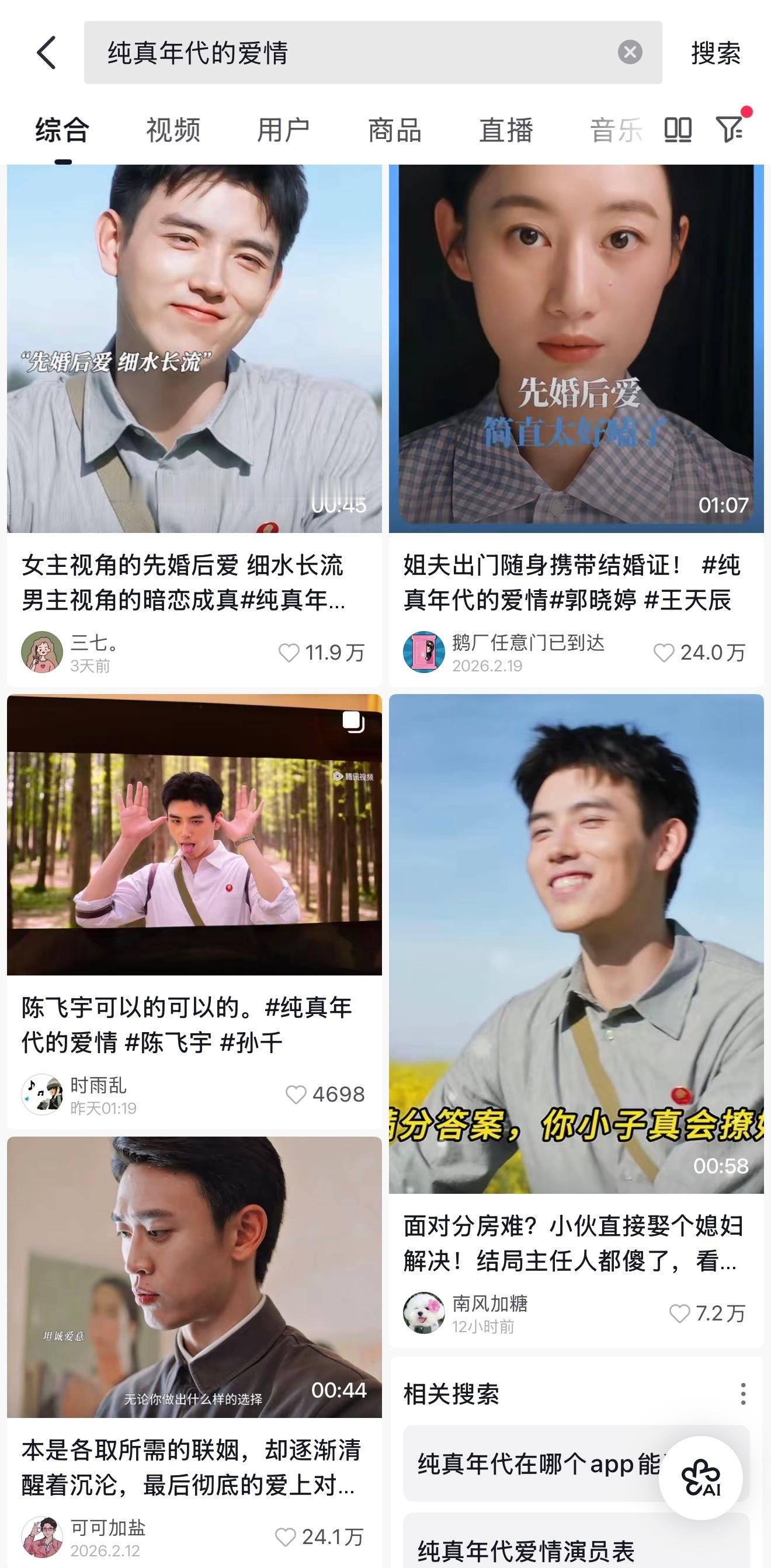 纯真年代的爱情 男二女二戏份陈飞宇还是红不起来的体质他和孙千两个人戏份比男二女二多很多结果两个人在下沉市场点赞完全不如男二和女二点赞差很多,被配角掀桌了。。