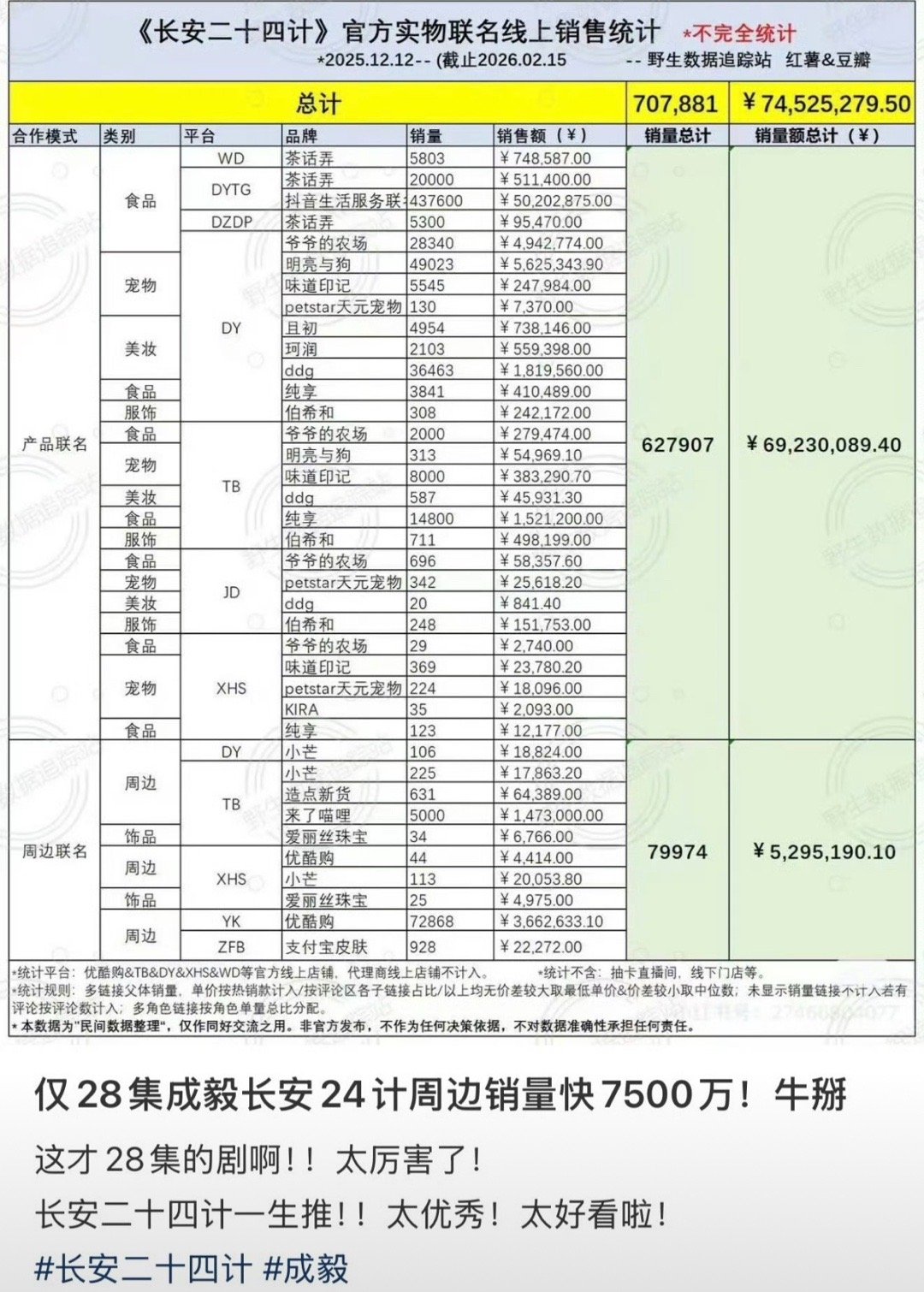 成毅长安二十四计仅联名周边销量近7500w❗这部剧只有28集。什么是扛剧扛招商?为什么他的剧各平台各品牌抢着要,这就是真金白银不掺氵的含金量,不愧是内娱顶级扛剧生财神爷🐮