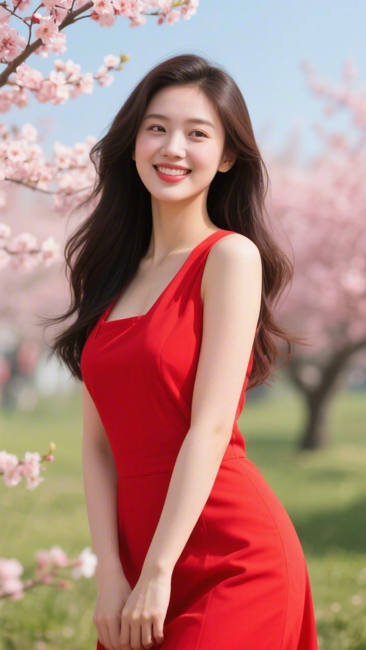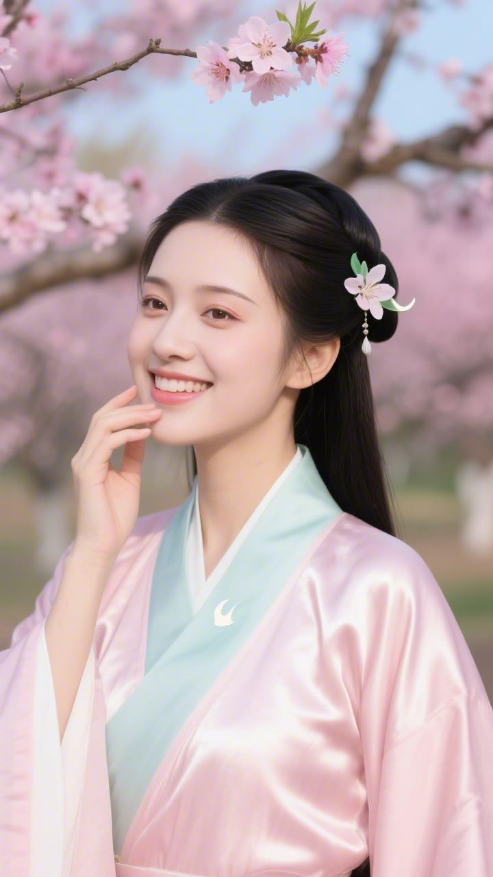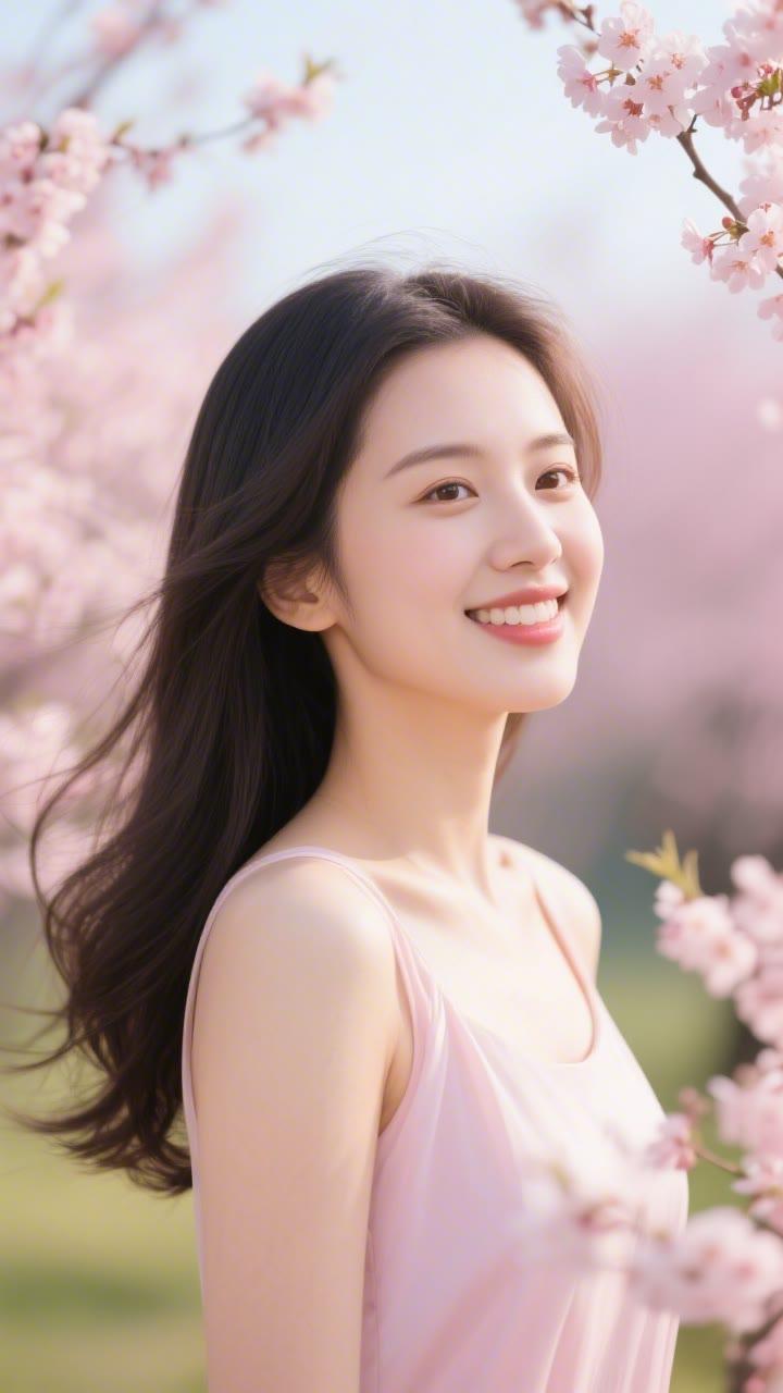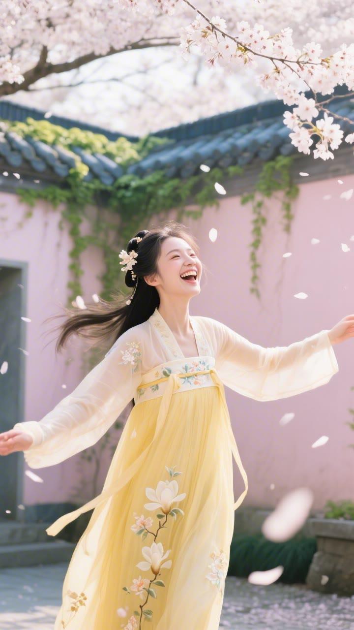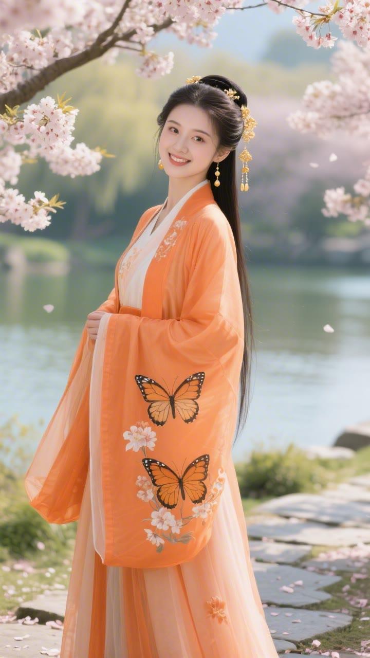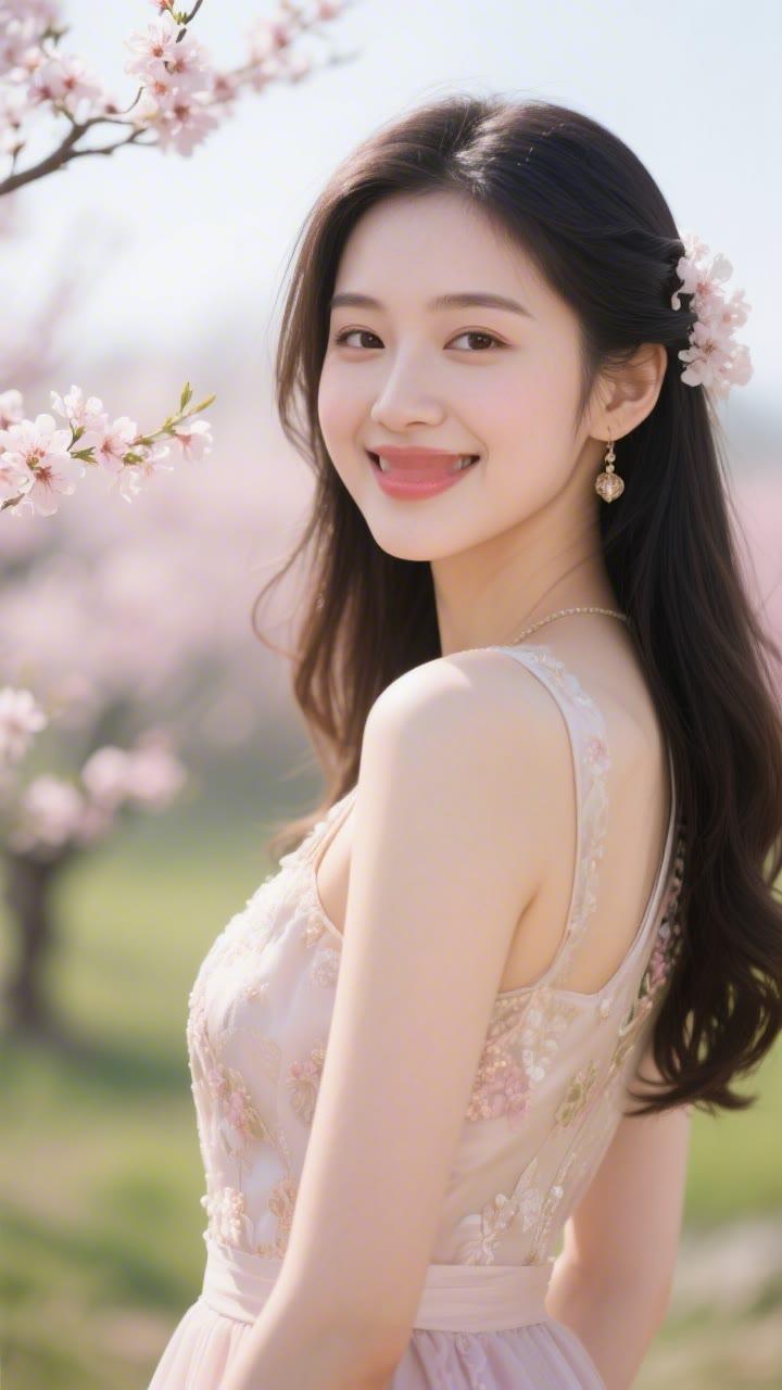 在金黄的稻田旁,穿着旗袍的优雅女子,笑靥如花。