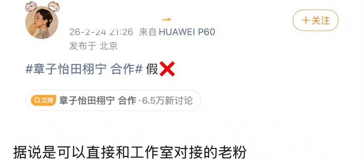 章子怡对接火速辟谣和田栩宁合作的🍉。关键章子怡关注田栩宁的rs还在第一,这么快就辟谣了,一点儿面子都不给吗?