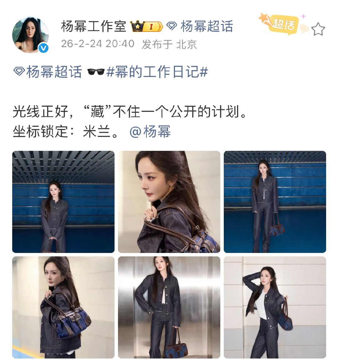 杨幂米兰时装周出发图杨幂米兰时装周出图杨幂米兰时装周出发图,丹宁套装利落干练,